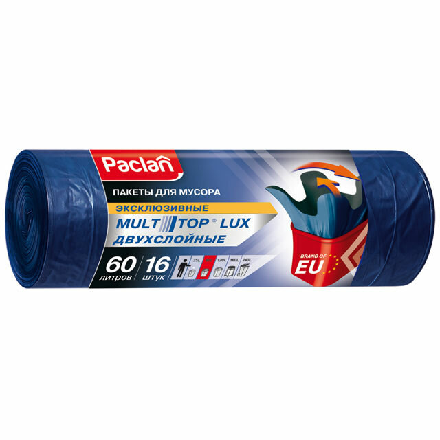 Мешки для мусора (мусорные пакеты) 60 л, 16 шт, синие, MULTITOP LUX, Paclan интересное: