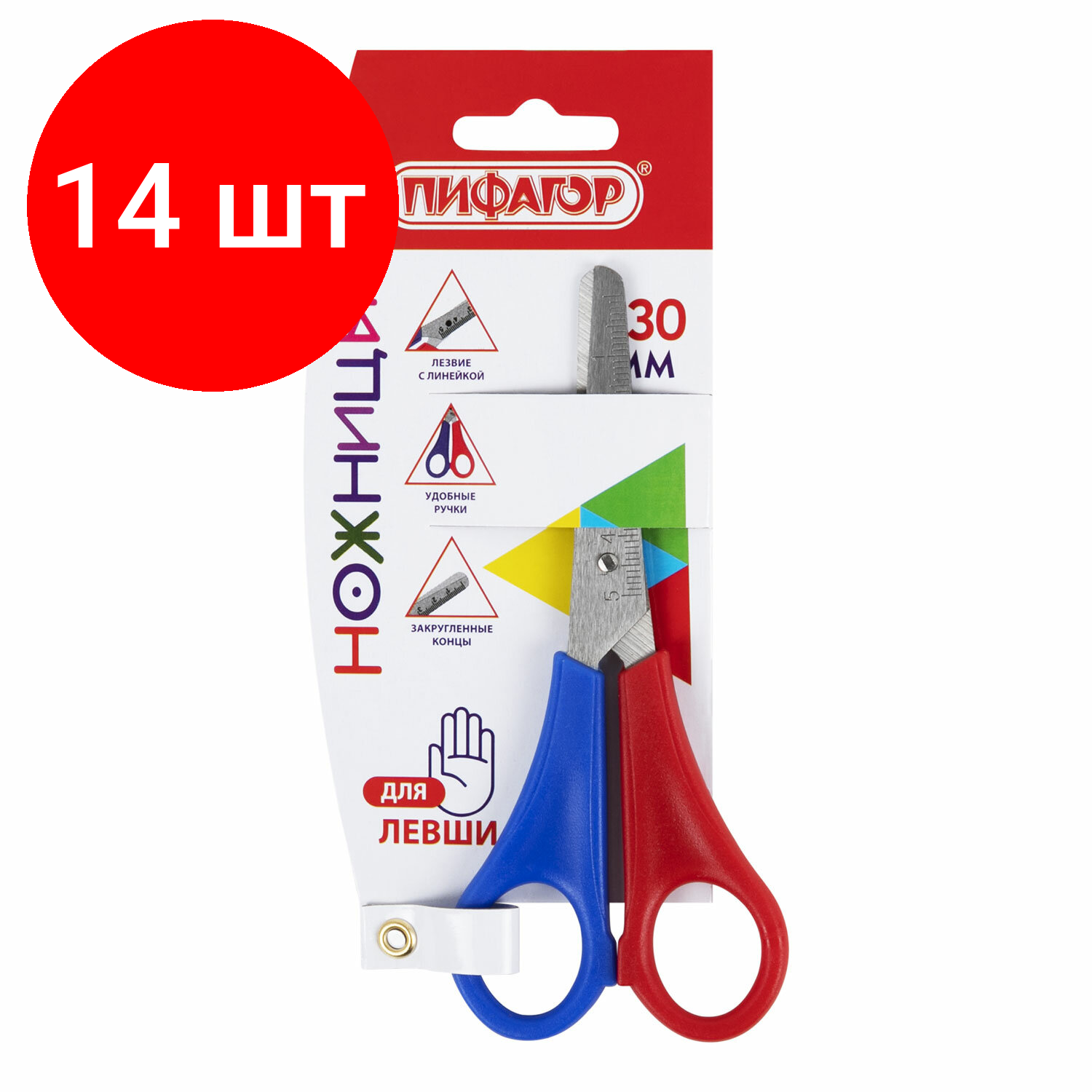 Комплект 21 шт, Ножницы пифагор, 130 мм, для левши, с линейкой, в картонной упаковке с европодвесом, 236784