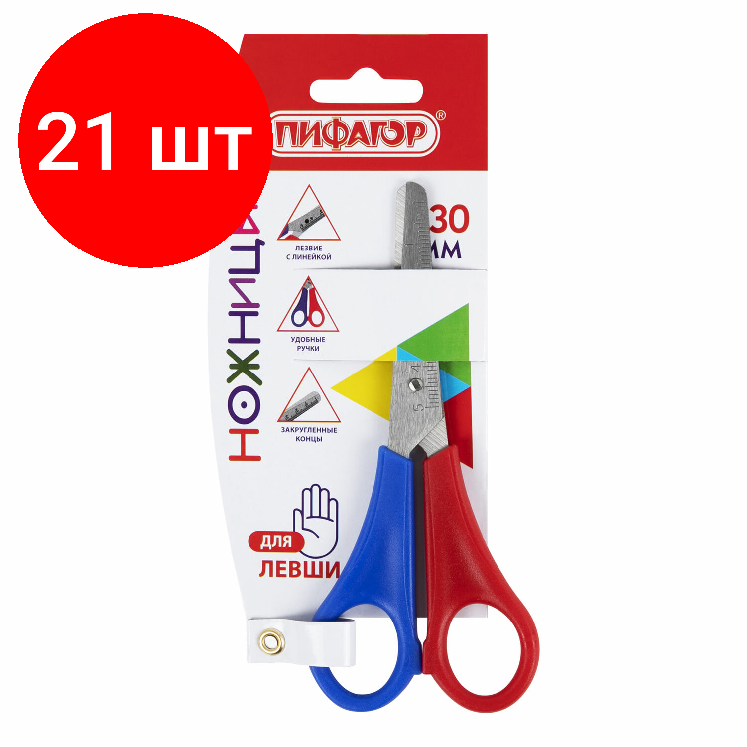 Купить Комплект 21 шт, Ножницы пифагор, 130 мм, для левши, с линейкой, в картонной упаковке с европодвесом, 236784