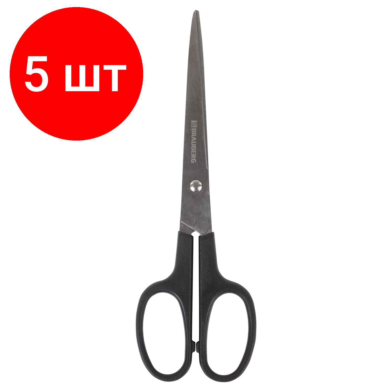 Купить Комплект 5 шт, Ножницы BRAUBERG "Standard" 180 мм, черные, классической формы, 2-х сторонняя заточка, 237096