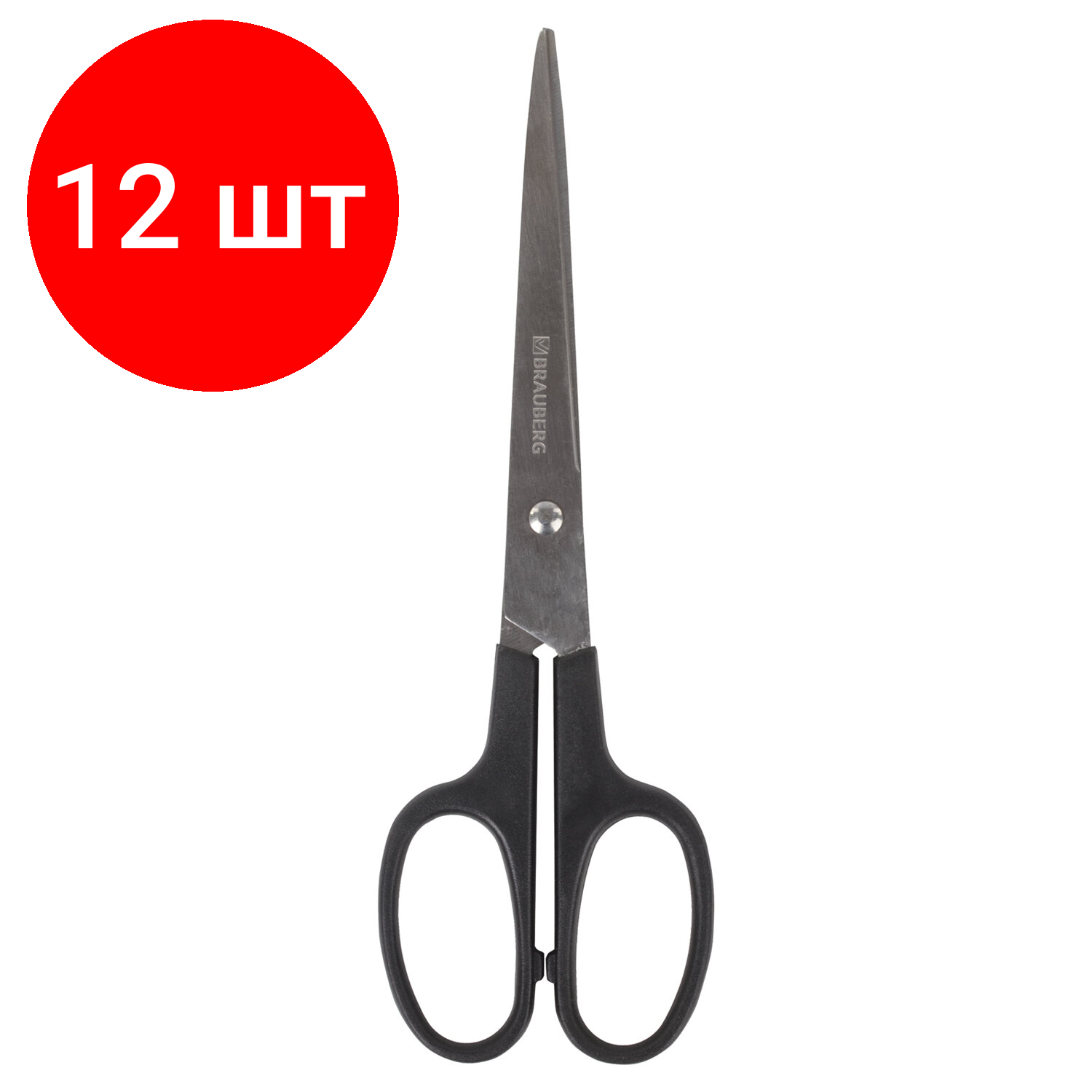Купить Ножницы Brauberg Standard 180мм, классической формы, черные, 12шт. (237096)