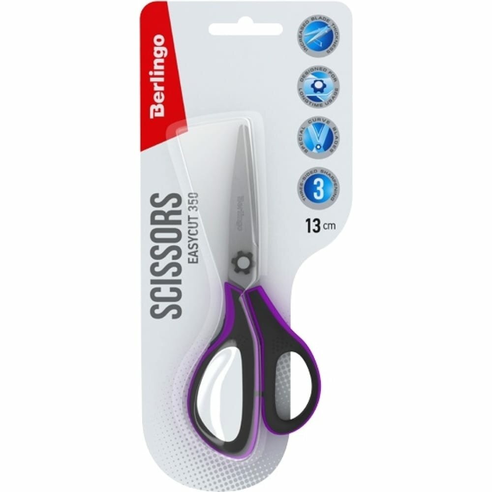Ножницы Berlingo "Easycut 350", 13см, сиреневые, эргономичные ручки, мягкие вставки, европодвес, 1 шт