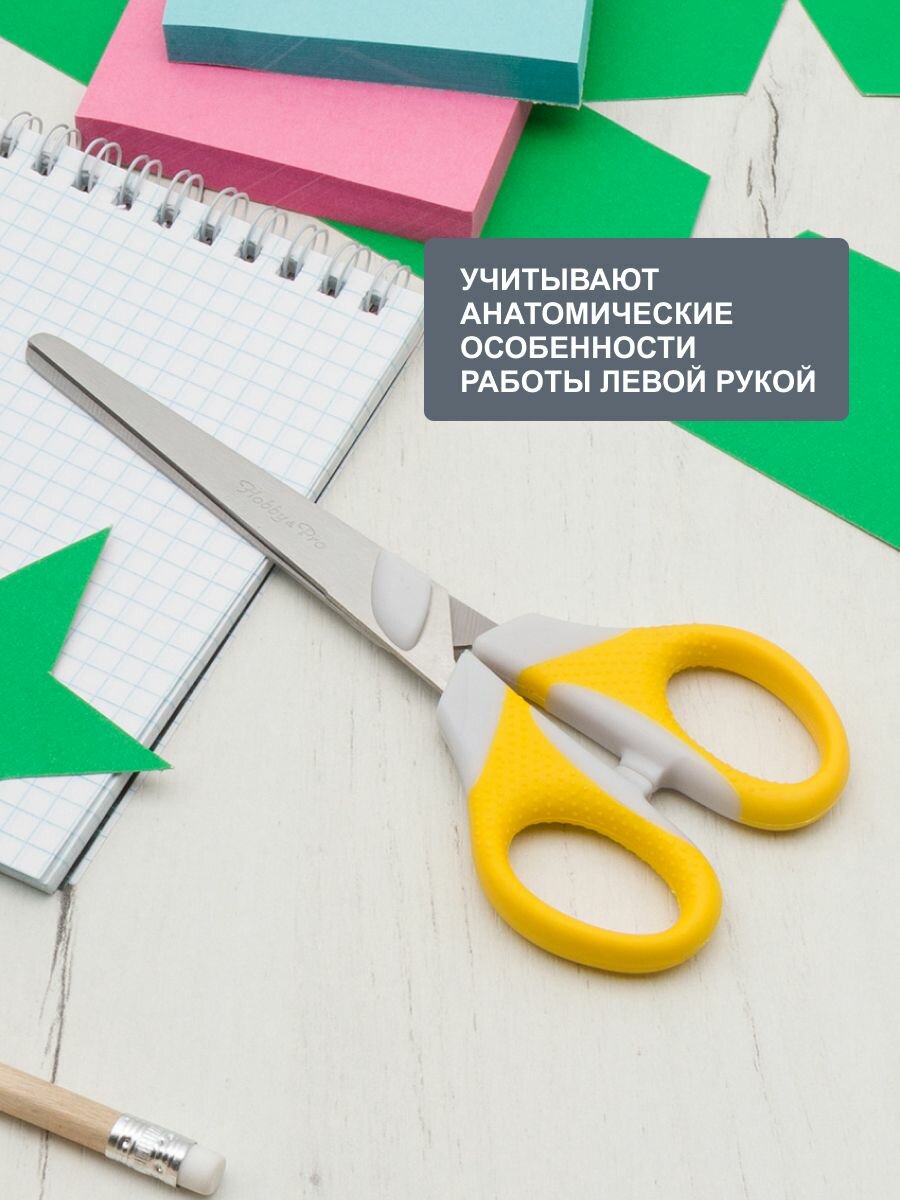 СохранитьНожницы канцелярские для левшей для дома и офиса, 16,5 см/6 1/2', силиконовые ручки SOFT, Hobby&Pro, 590440 (желтый) интересное:
