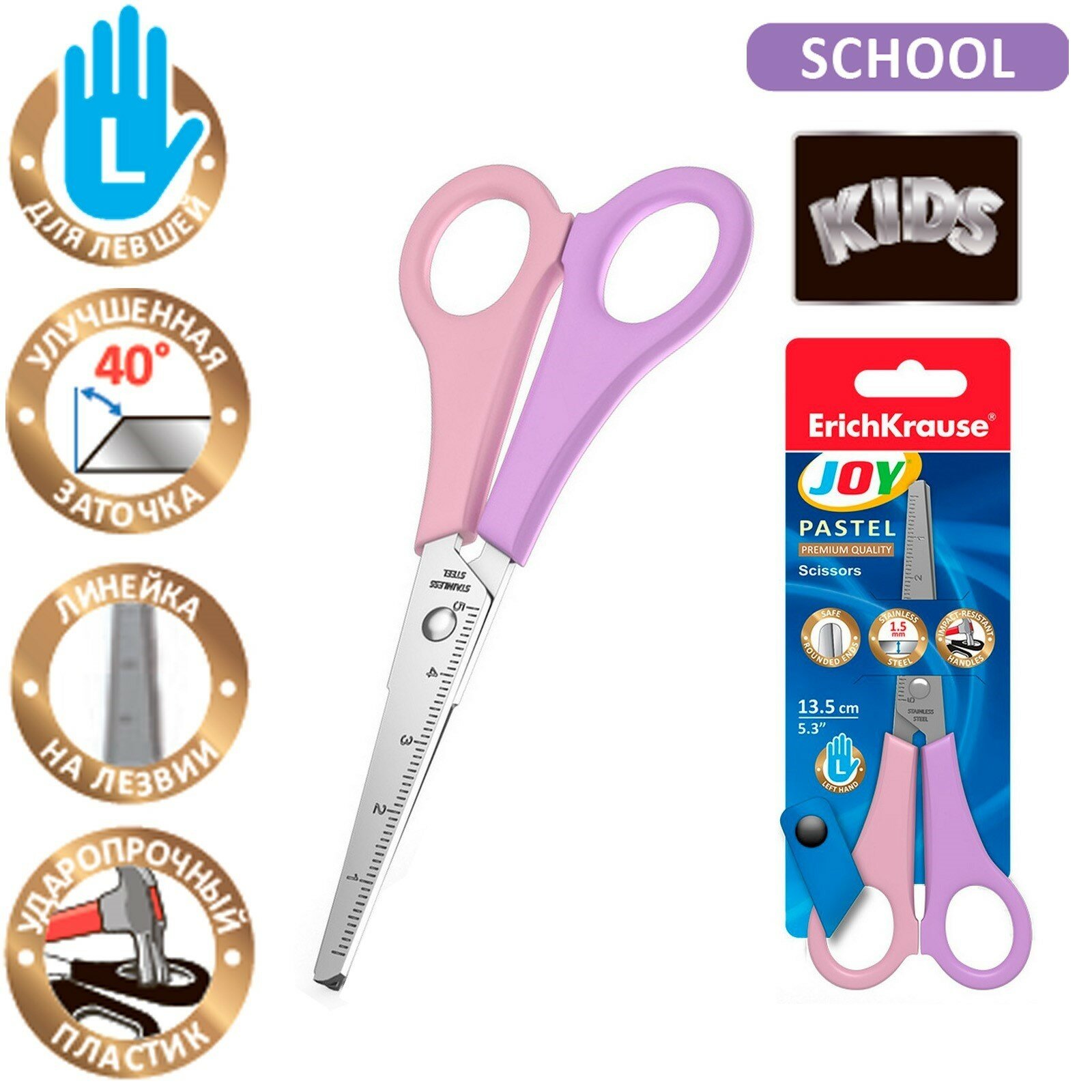 Ножницы детские Erich Krause для левшей 135 мм Joy Pastel, в блистере (56922) интересное: