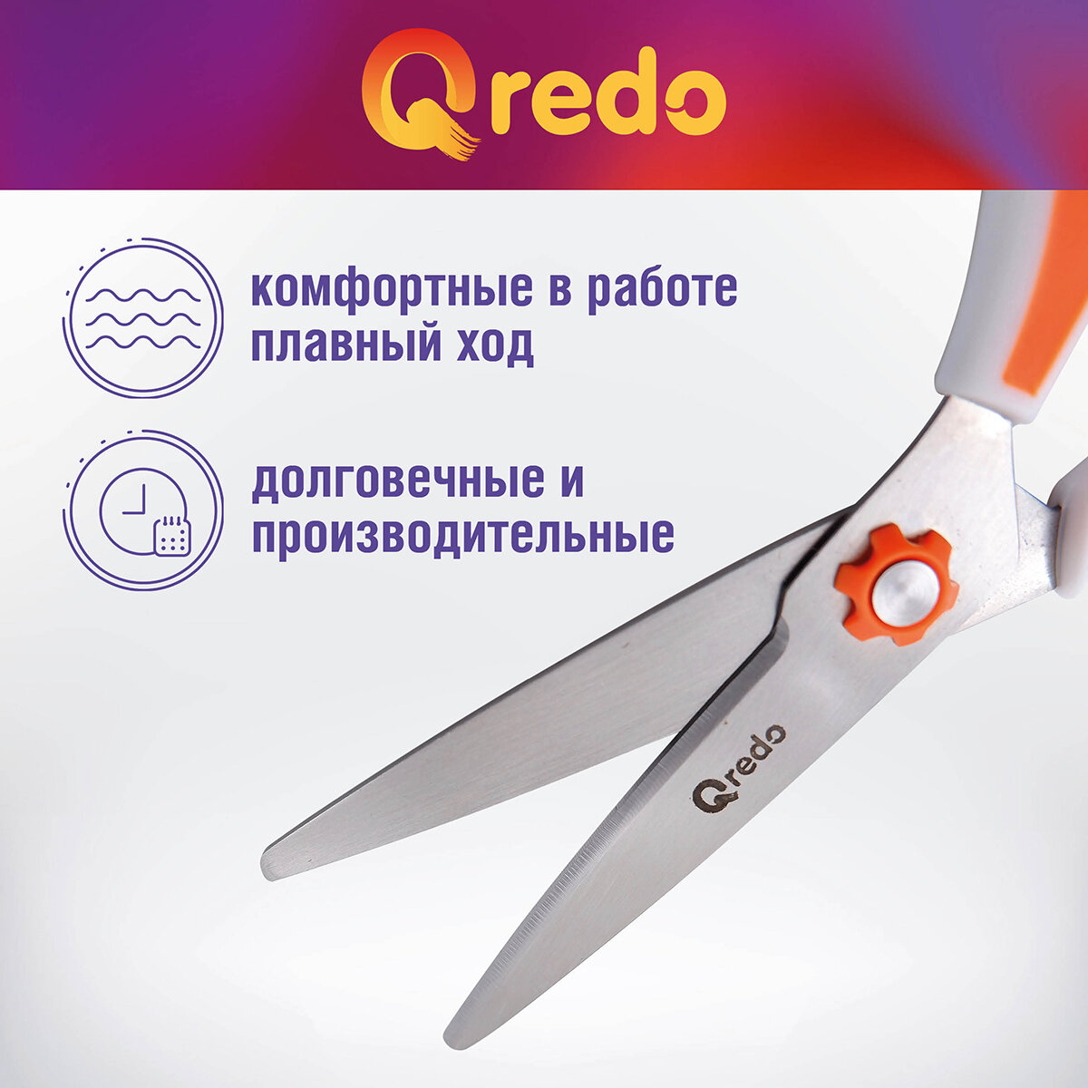 Ножницы 17,4 см QREDO ERGO-GO 3D лезвие, эргономичные ручки, белый/оранжевый, пластик, прорезиненные интересное: