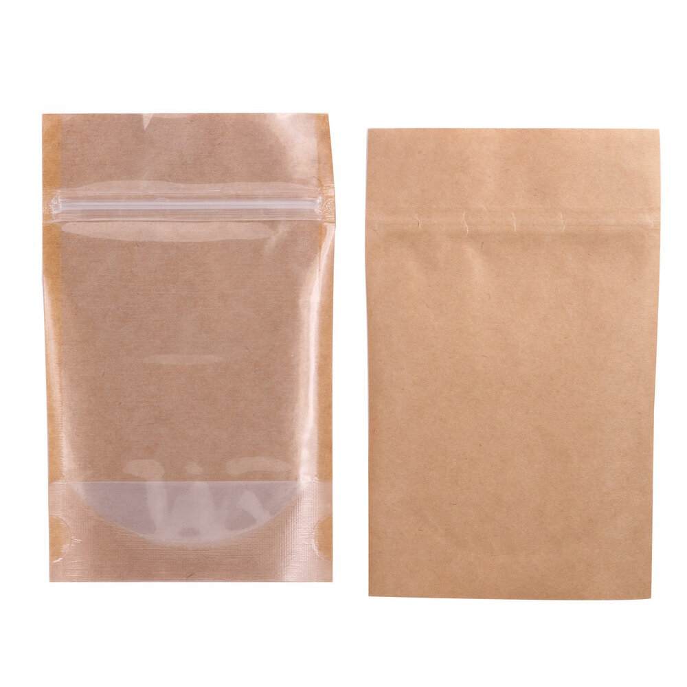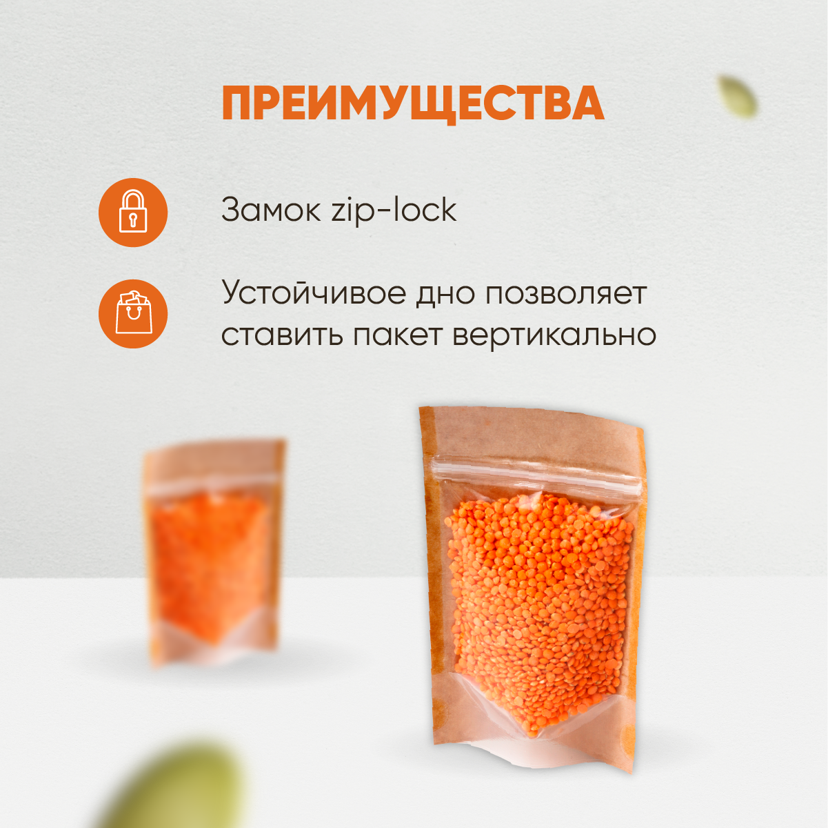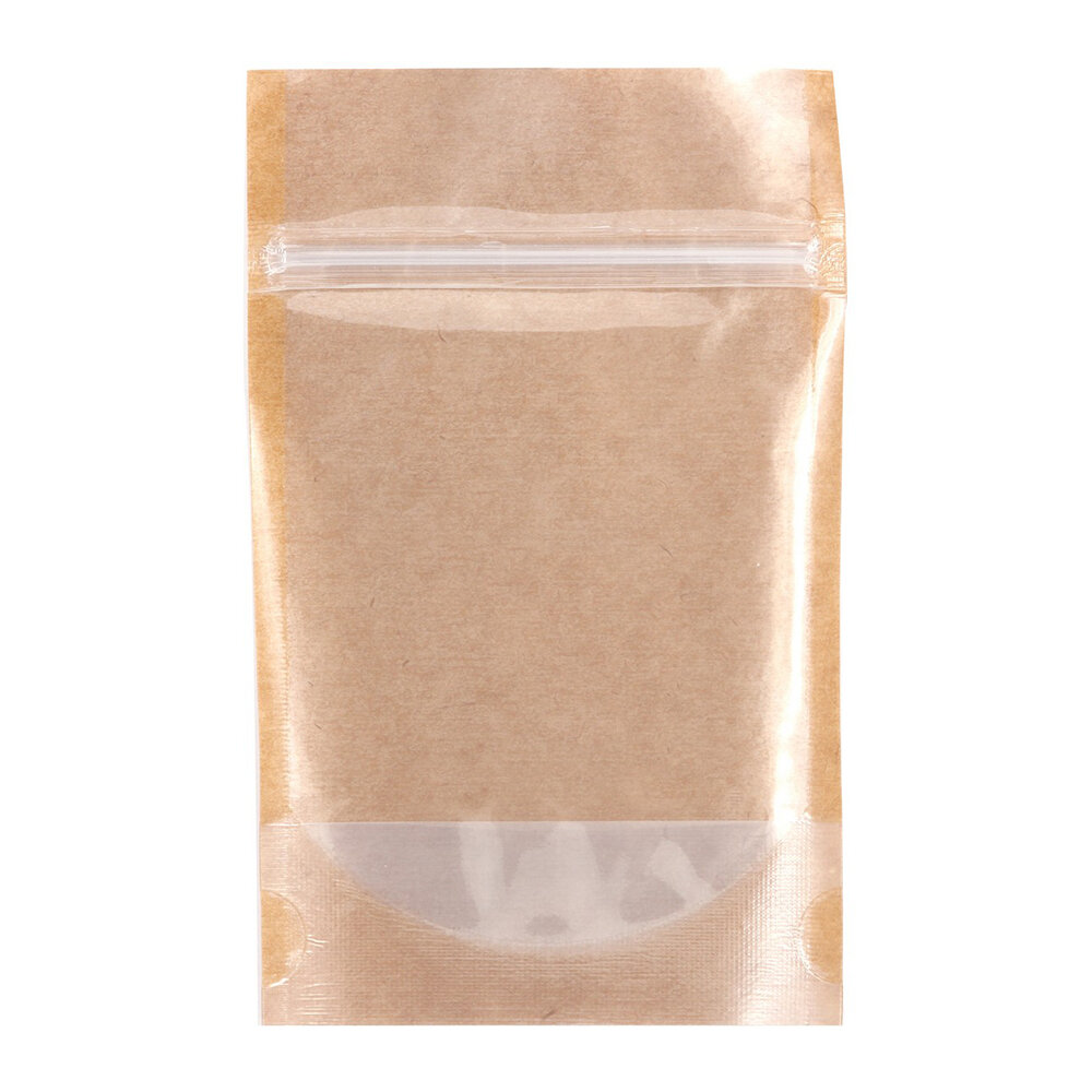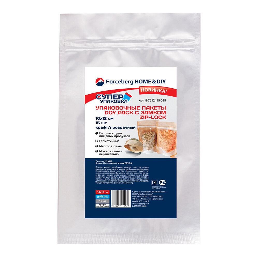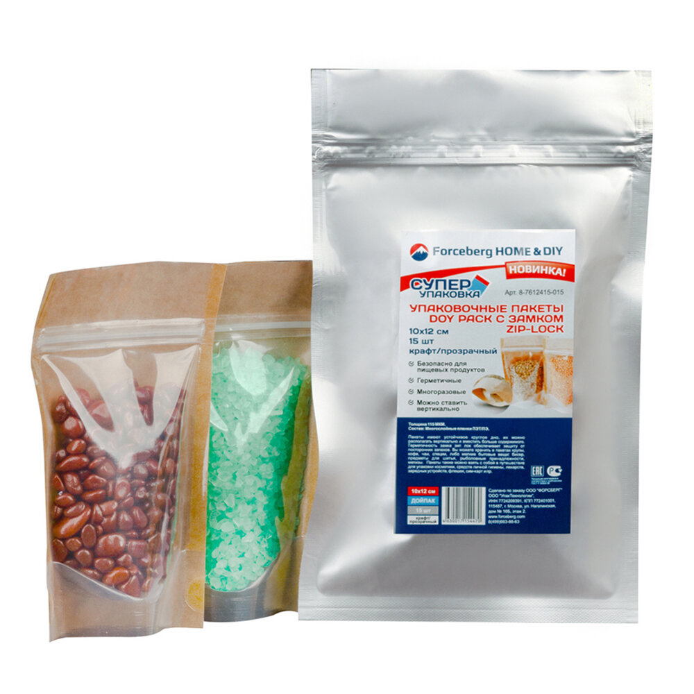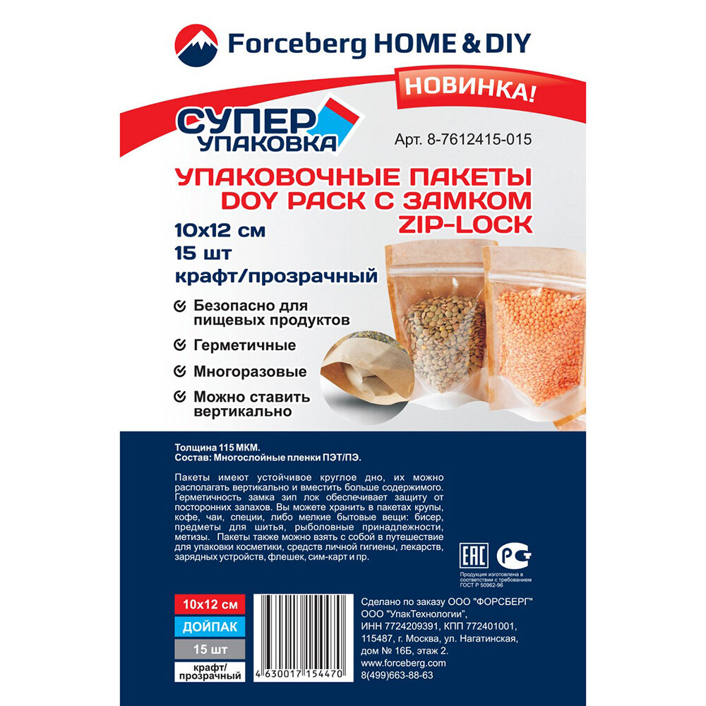 Купить Вертикальные упаковочные бумажные зип пакеты Forceberg HOME&DIY ДОЙ ПАК с замком zip-lock и плоским донышком 10х12 см, крафт/прозрачный, 15шт