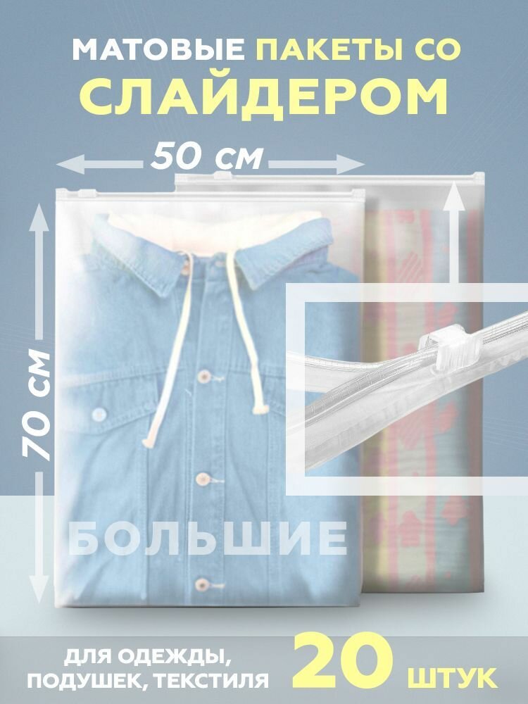 Купить Пакеты с застежкой (бегунком) для одежды, 500х700 мм, 60 мкм, 20 штук, матовые