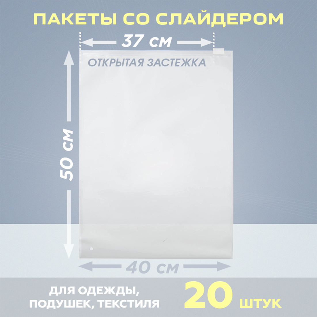Пакеты с застежкой (бегунком) для одежды, 500х700 мм, 60 мкм, 20 штук, матовые