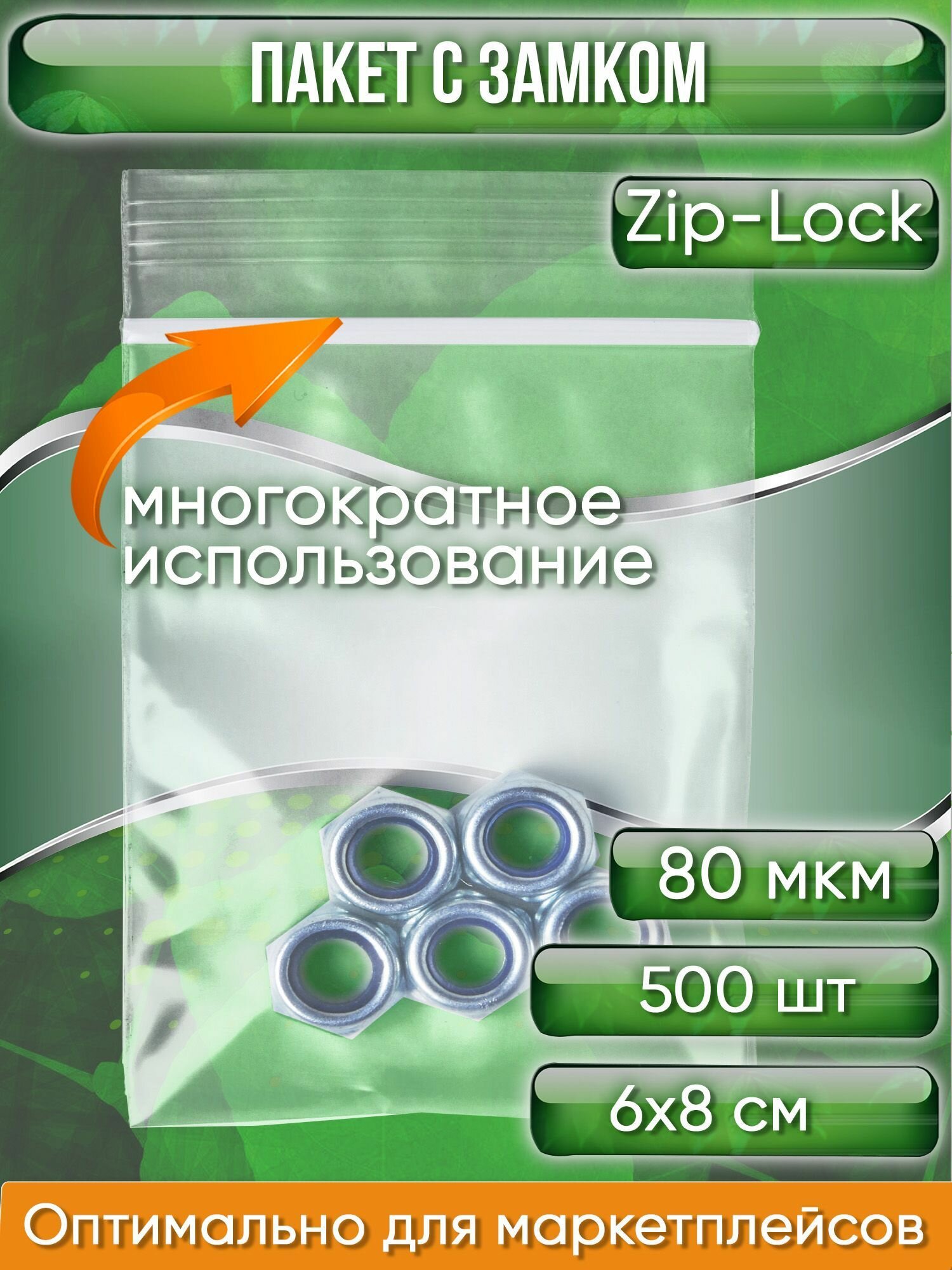 Пакет с замком Zip-Lock (Зип лок), 6х8 см, особопрочный, 80 мкм, 500 шт. интересное: