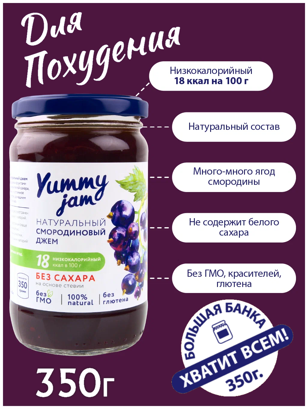 Джем Yummy jam смородиновый без сахара интересное:
