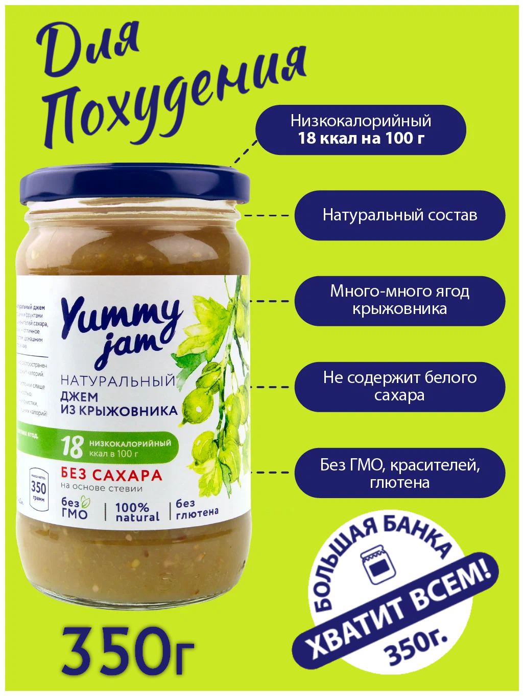 Джем Yummy jam из крыжовника без сахара интересное: