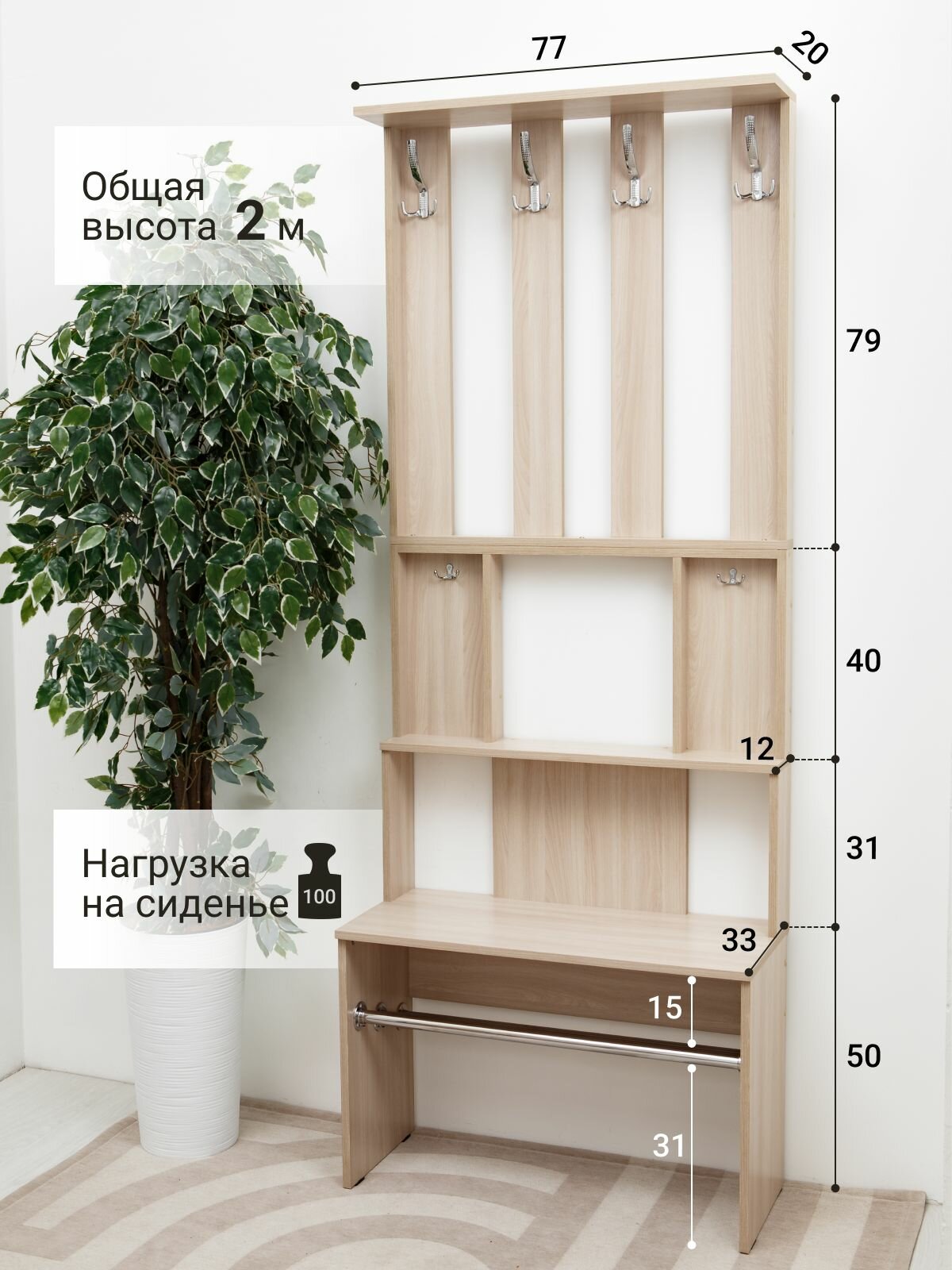 Вешалка в прихожую Мебель на Руси "Дуглас" 40х150х23,5 Дуб крафт золотой