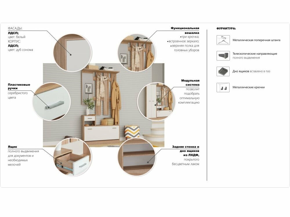 Набор мебели для прихожей Интер с зеркалом вешалкой и обувницей, Белый/Дуб сонома интересное: