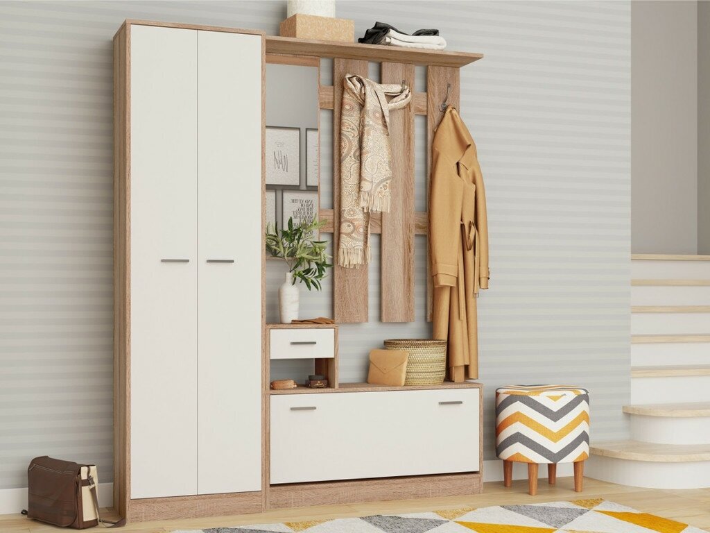 Ниже Вы можете прочитать отзывы на Набор мебели для прихожей Интер с зеркалом вешалкой и обувницей, Белый/Дуб сонома, ознакомится с подробными характеристиками, посмотреть интересные обзоры и фотографии на Набор мебели для прихожей Интер с зеркалом вешалкой и обувницей, Белый/Дуб сонома.