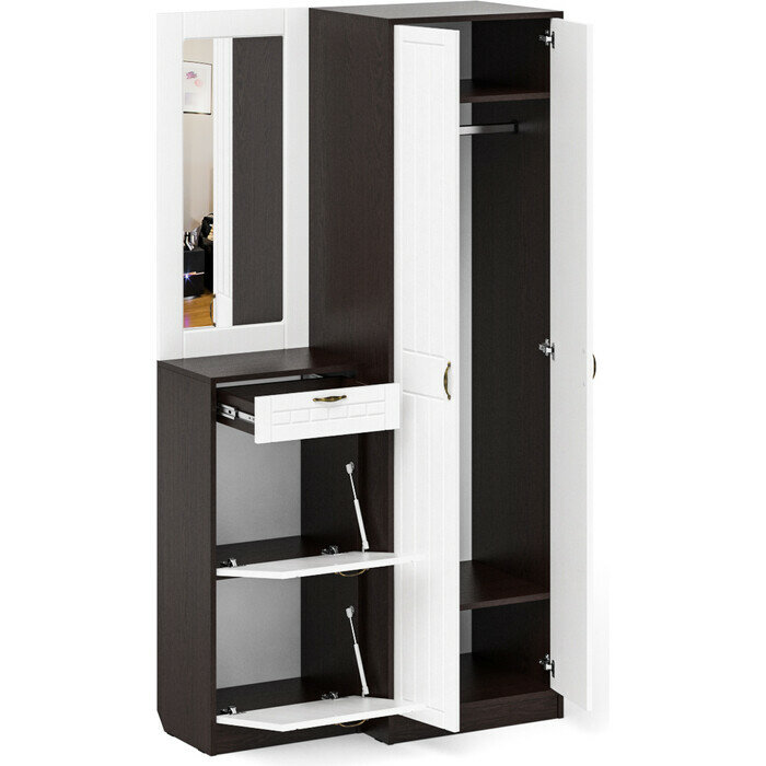Прихожая Мебельный двор П-6 Компоновка № 17 венге/фасады МДФ белое дерево фрезеровка прованс (1024914) интересное: