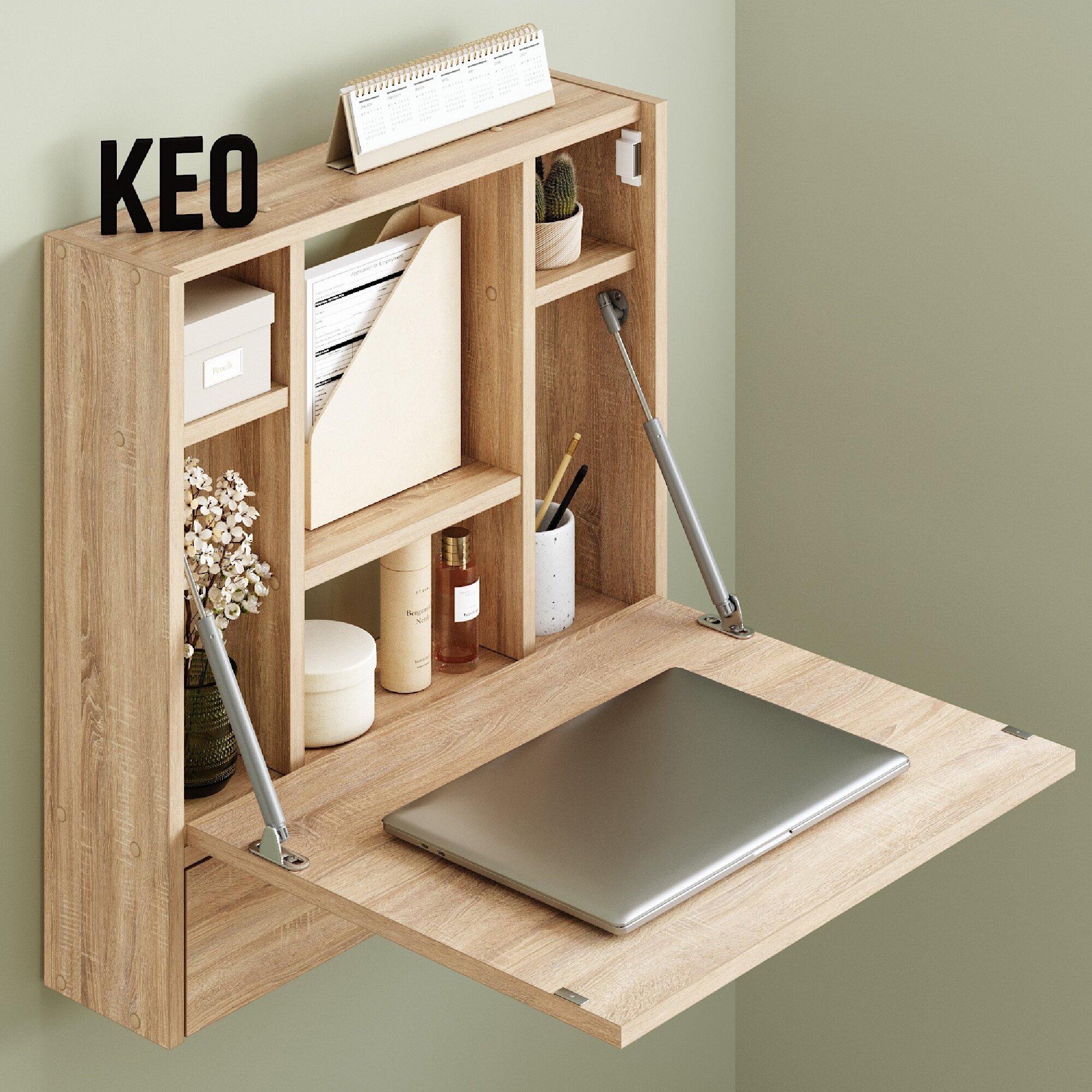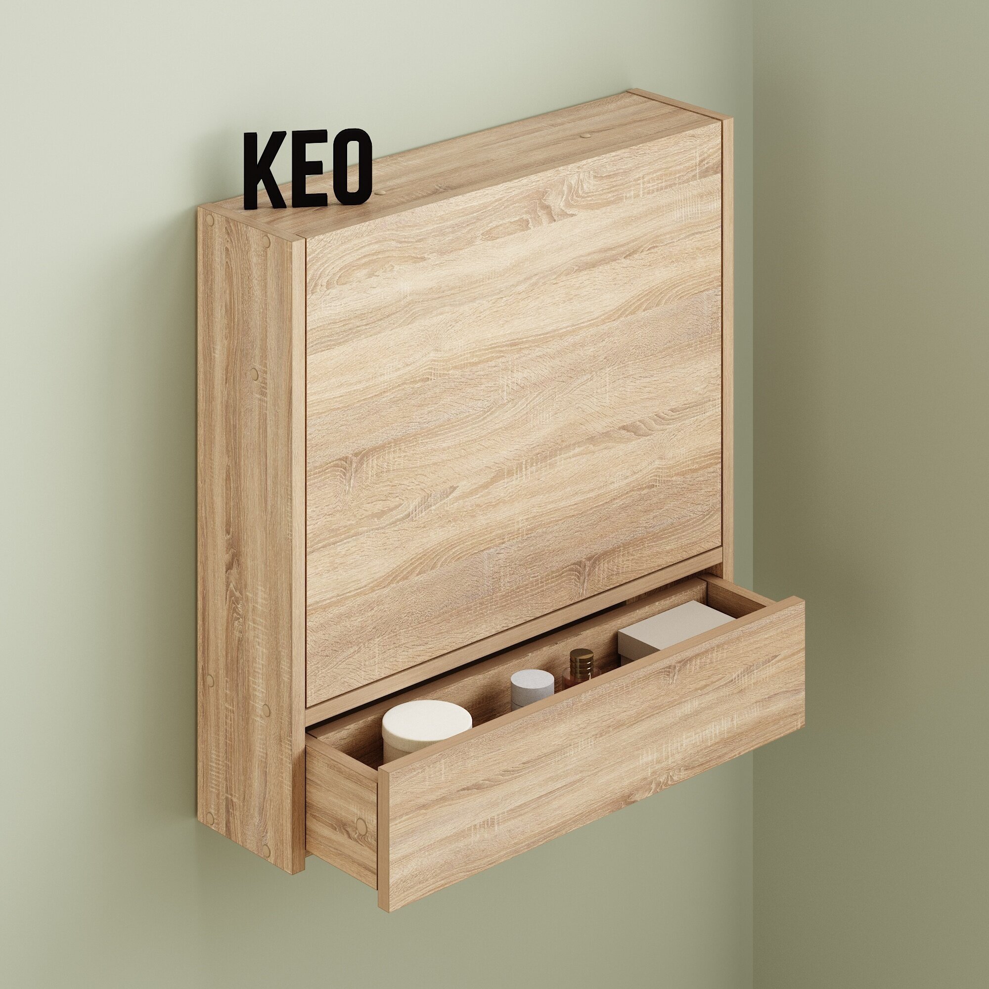 Купить Стол складной 60х60х14,6 подвесной (навесной) письменный трансформер с откидной столешницей, выдвижным ящиком и полками секретер Кео СТМ-23 дуб сонома