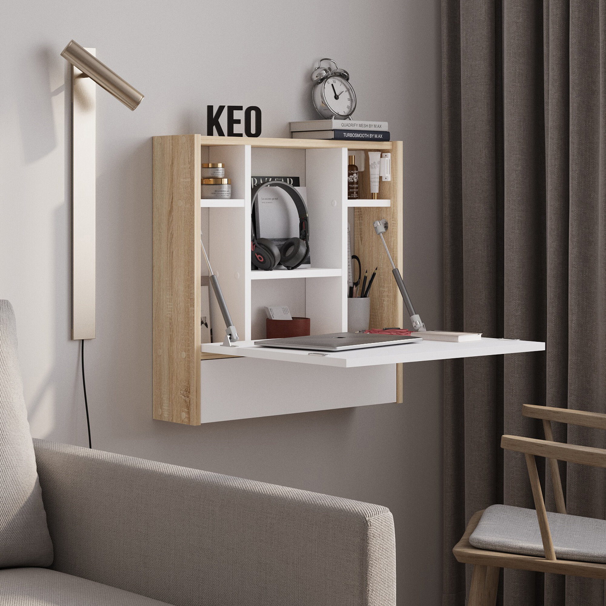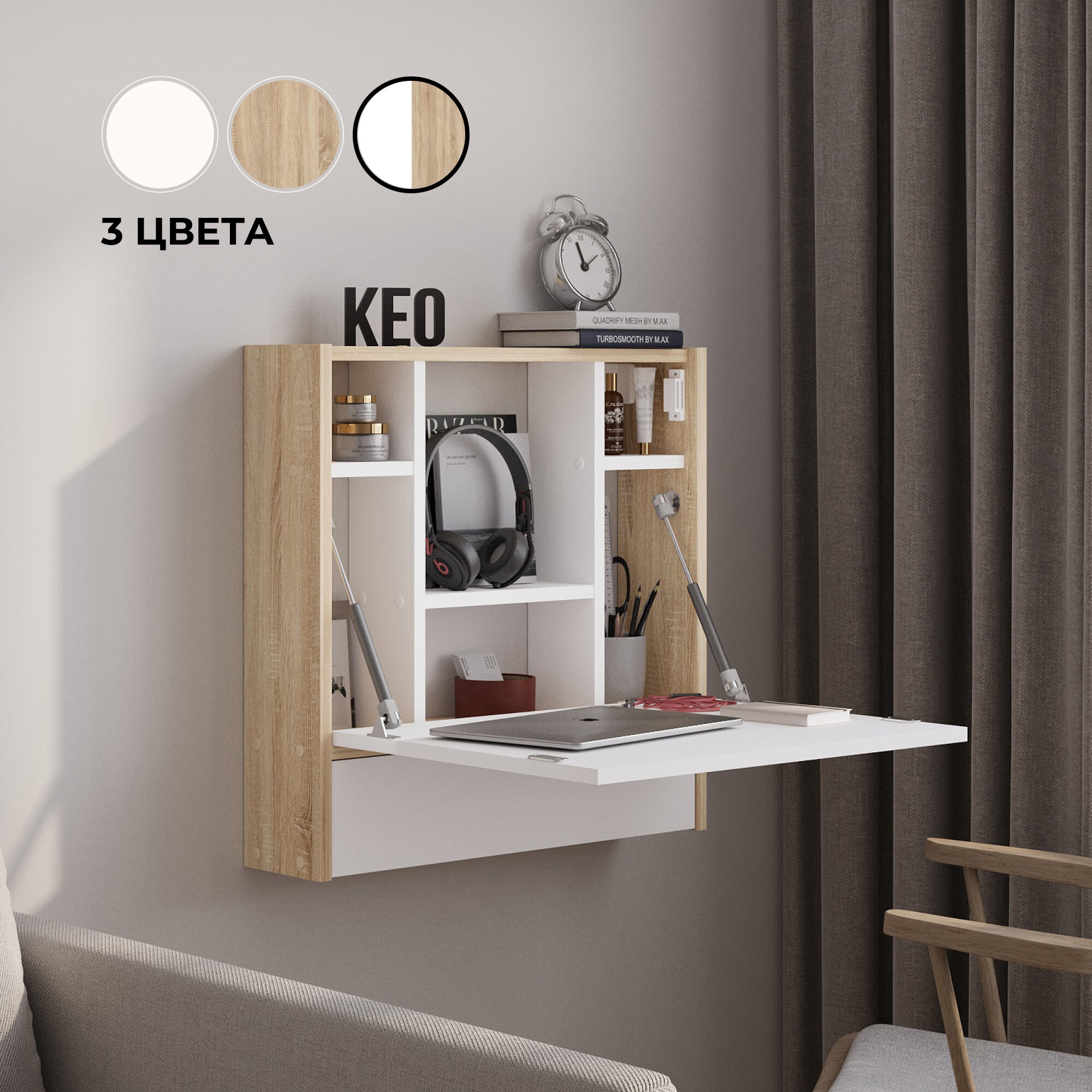 Купить Стол подвесной письменный Кео СТM-23 белый и дуб сонома с откидной столешницей и выдвижным ящиком для школьников для ноутбука для дома