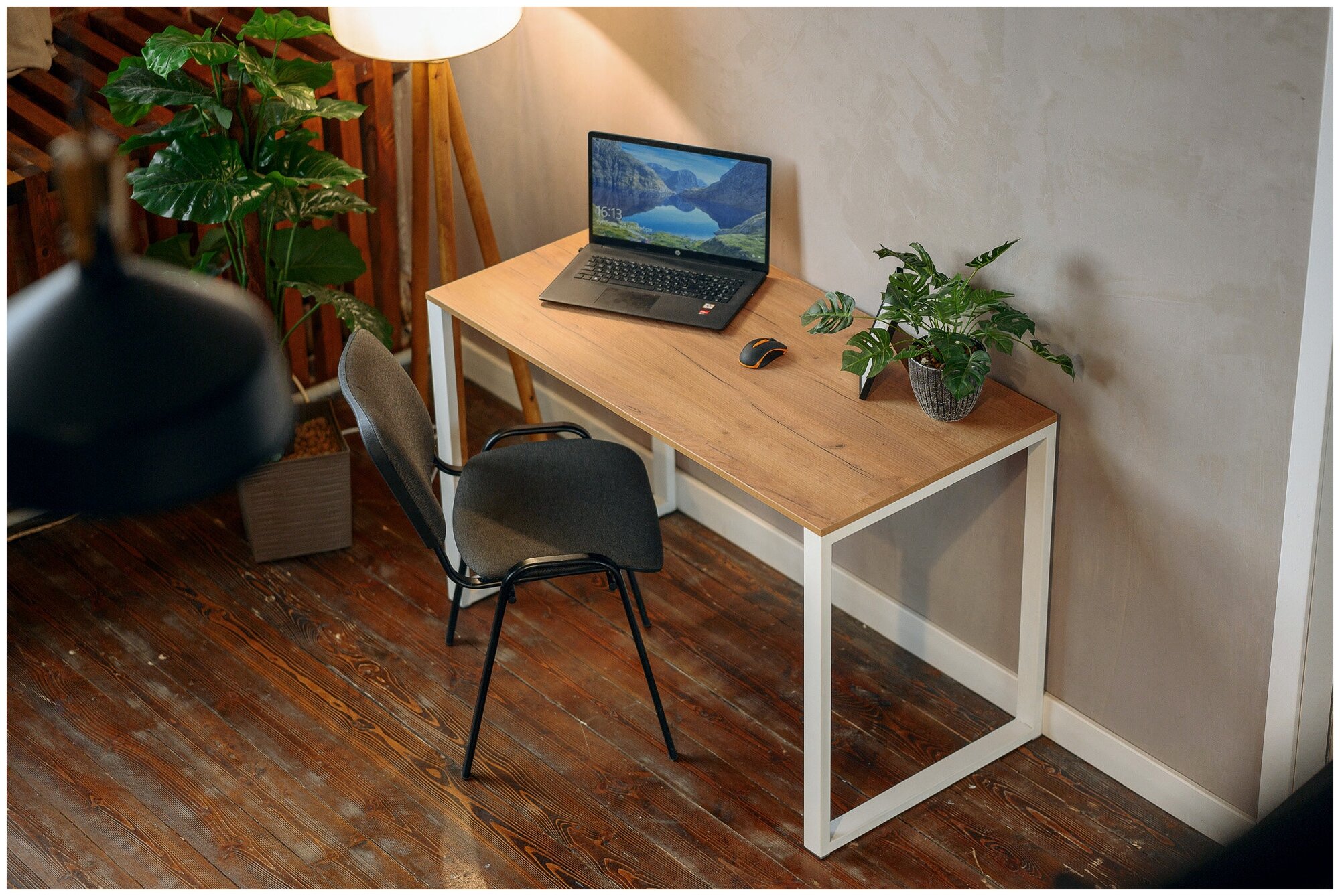 Cтол Birman письменный, компьютерный, кухонный, обеденный, игровой, лофт 120х60, дуб/белый каркас