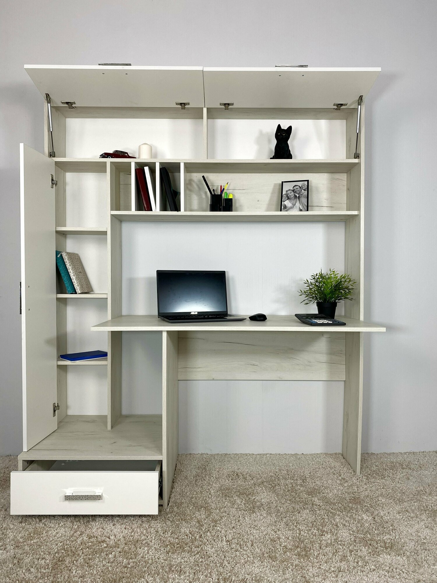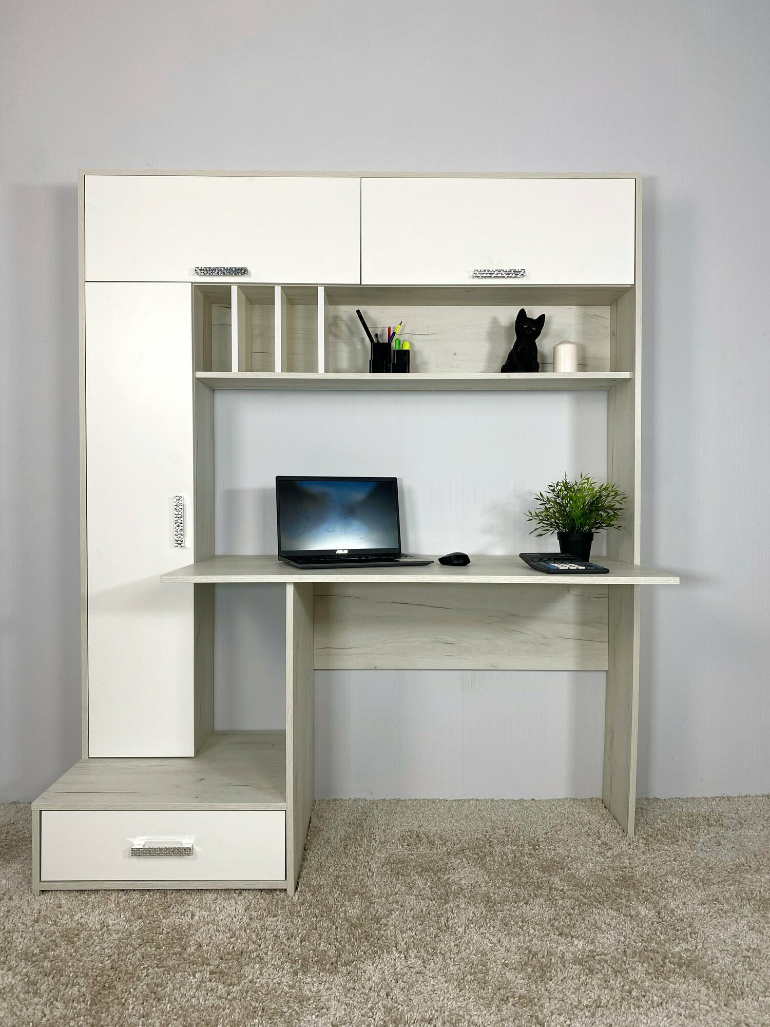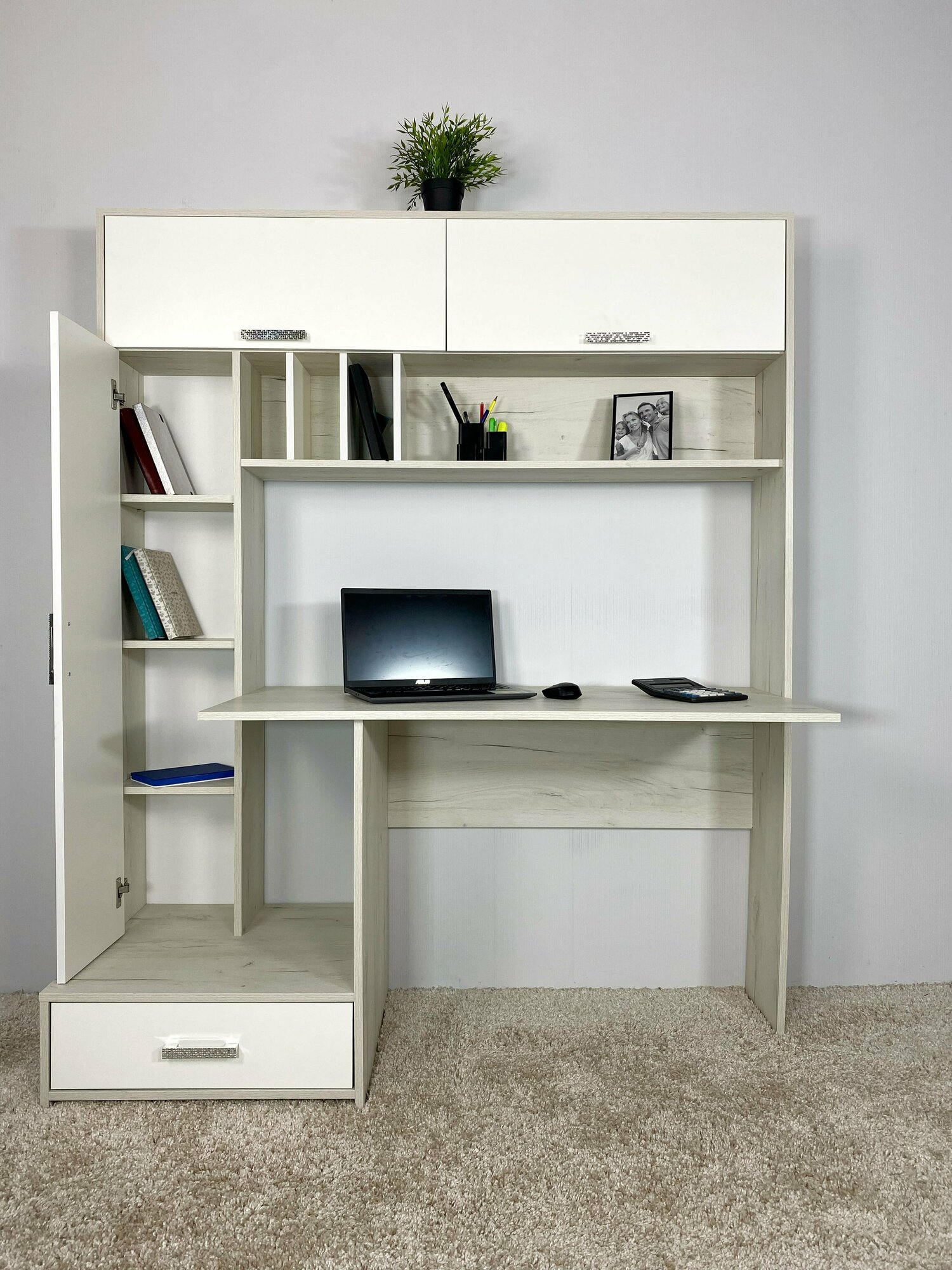 Компьютерный стол Мерано 1, стол с полками, стол со шкафом, дуб крафт белый, белый шагрень интересное: