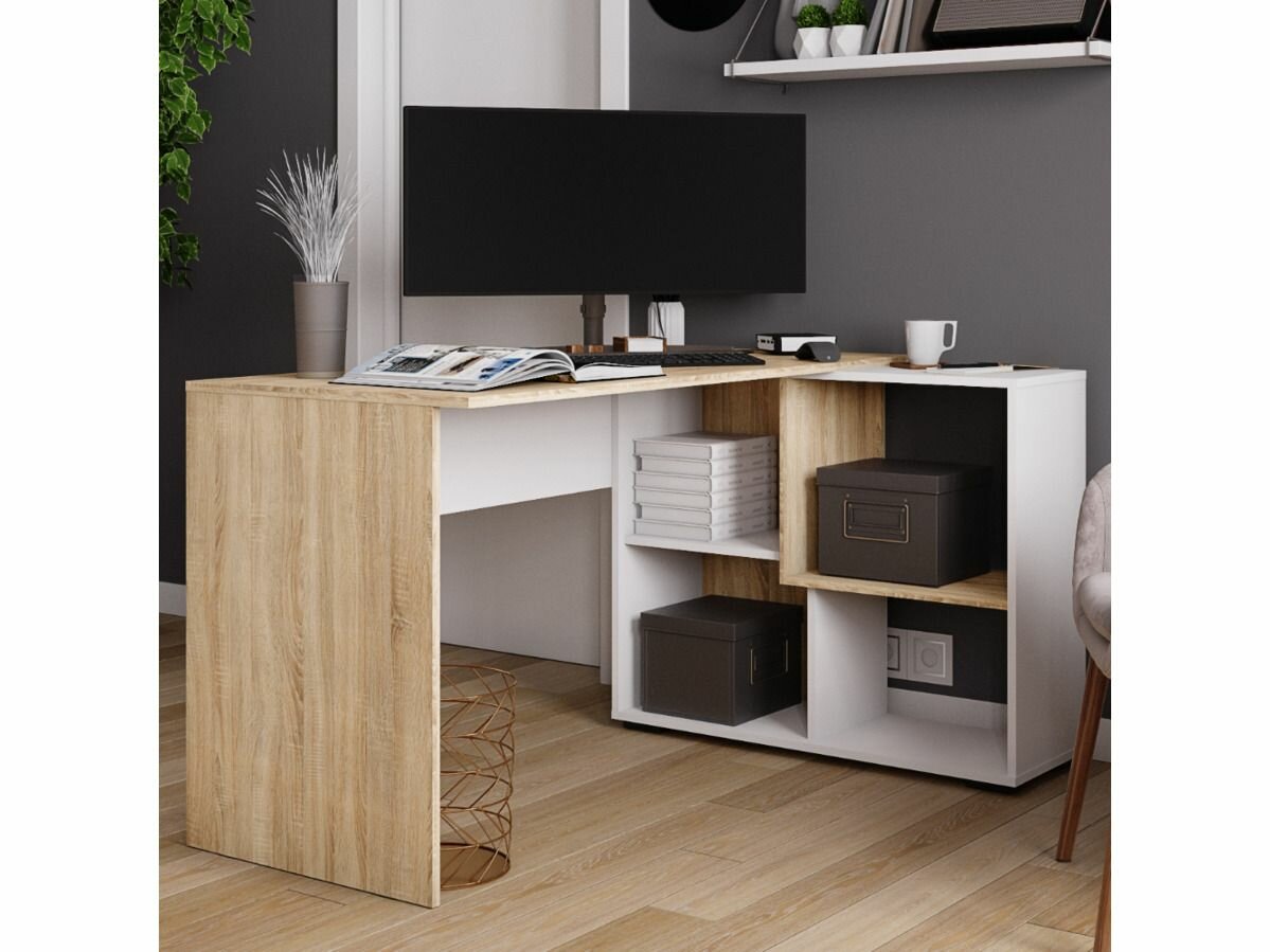 Угловой компьютерный стол "Micon", СКМУ-4, универсальная сборка, белый/дуб крафт