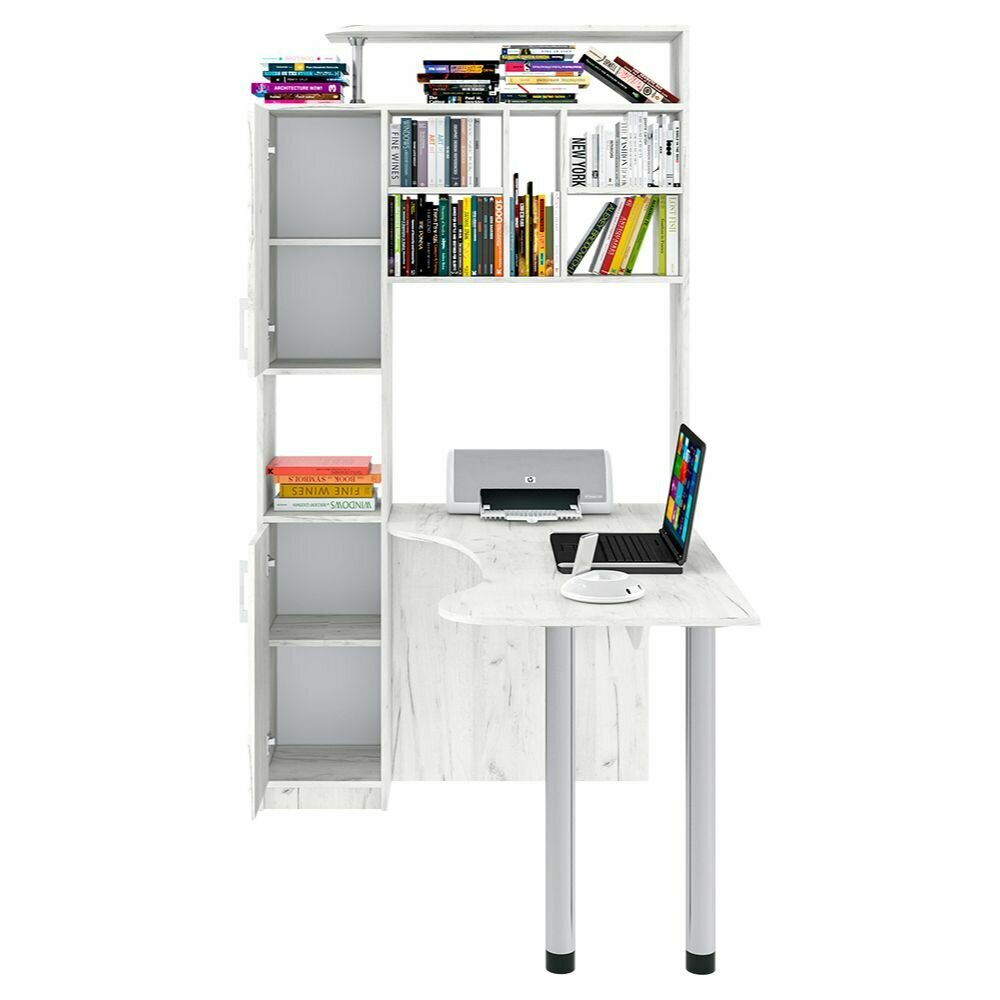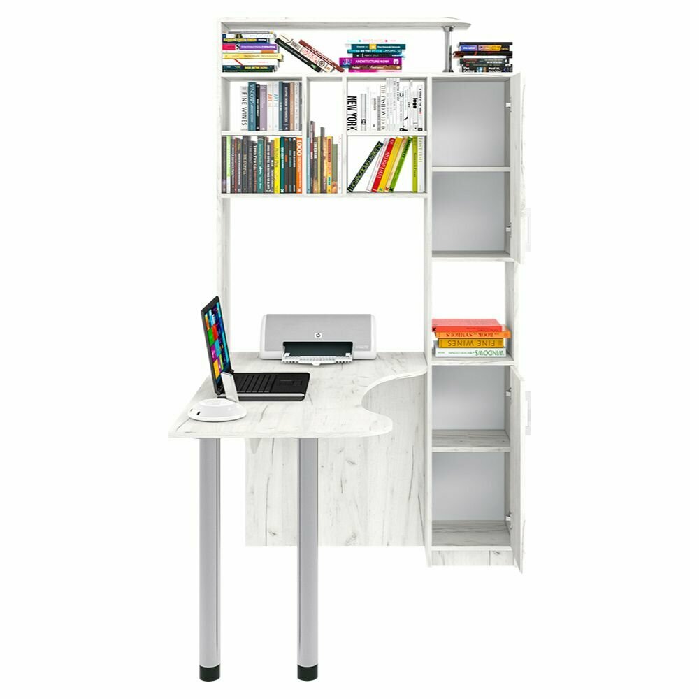 Угловой компьютерный стол КС-14 с надстройкой и пеналом белый