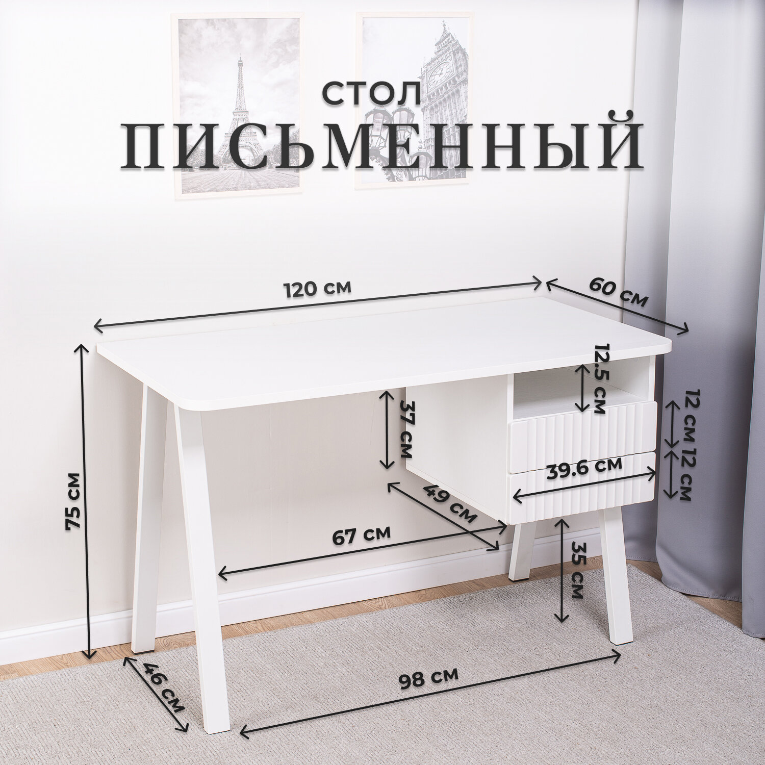 | Дополнительная информация | Стол письменный с ящиками, письменный стол дуб, стол белый, столик, для школьника, стол в комнату, компьютерный стол, стол 110, cnjk |