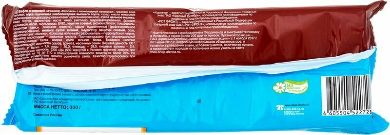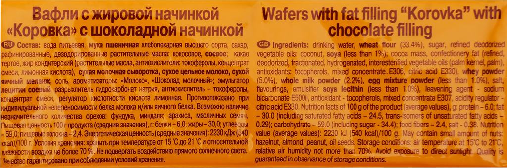 Вафли Коровка с Шоколадной начинкой 300 г интересное: