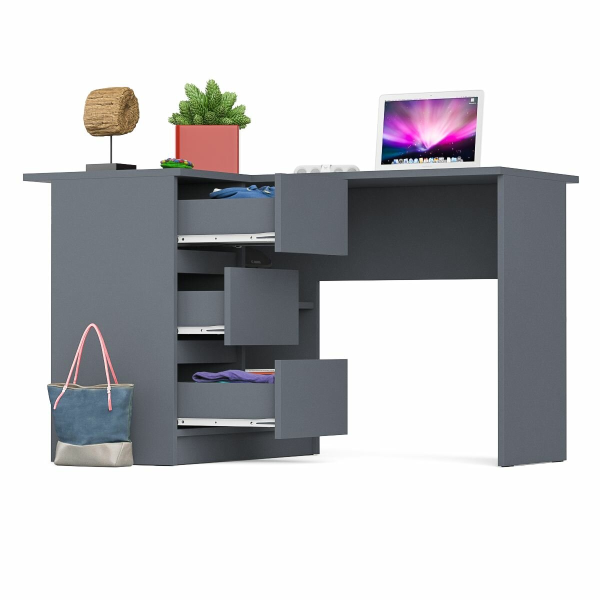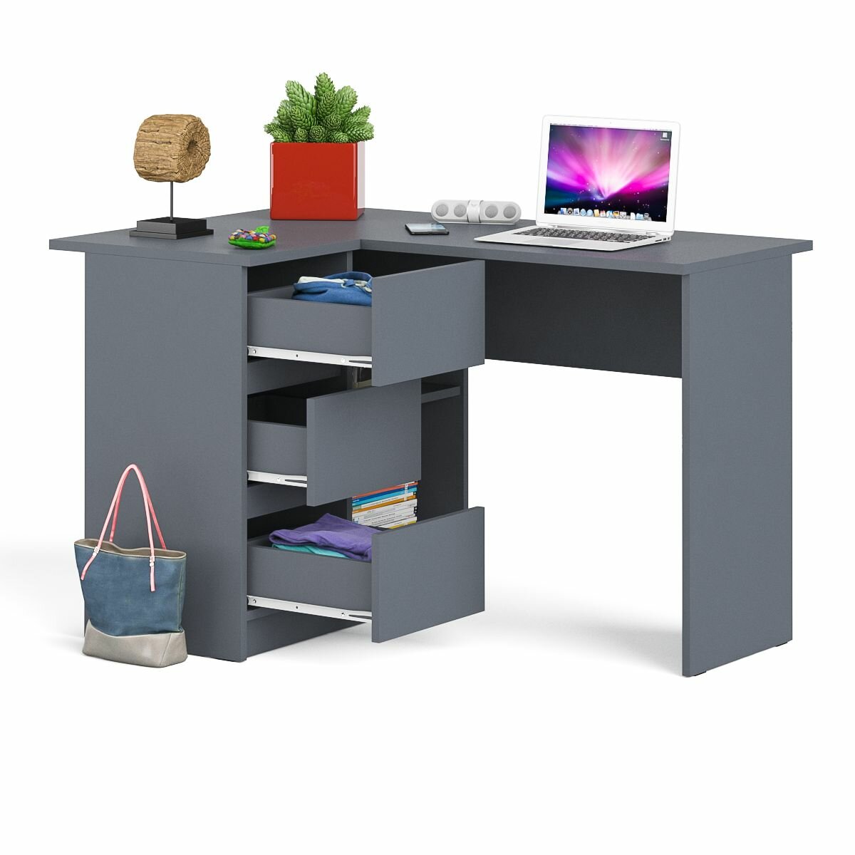 Угловой компьютерный стол Мори МС-16 левый графит, 124,4х84,9х76,6 см, ящики слева, НЕ универсальная сборка