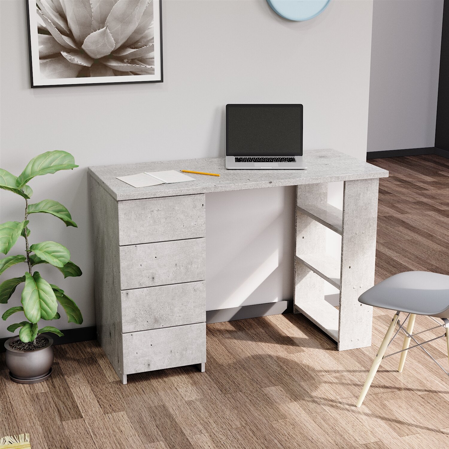 Купить Стол письменный с ящиками школьный, компьютерный игровой стол, рабочий стол для ноутбука domokomod с 4 ящиками и полками Цемент 106*50*75