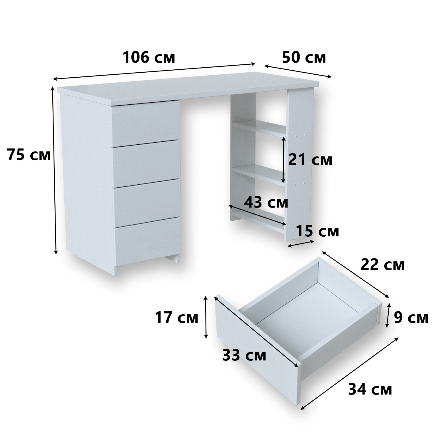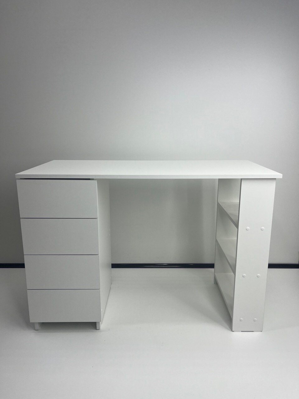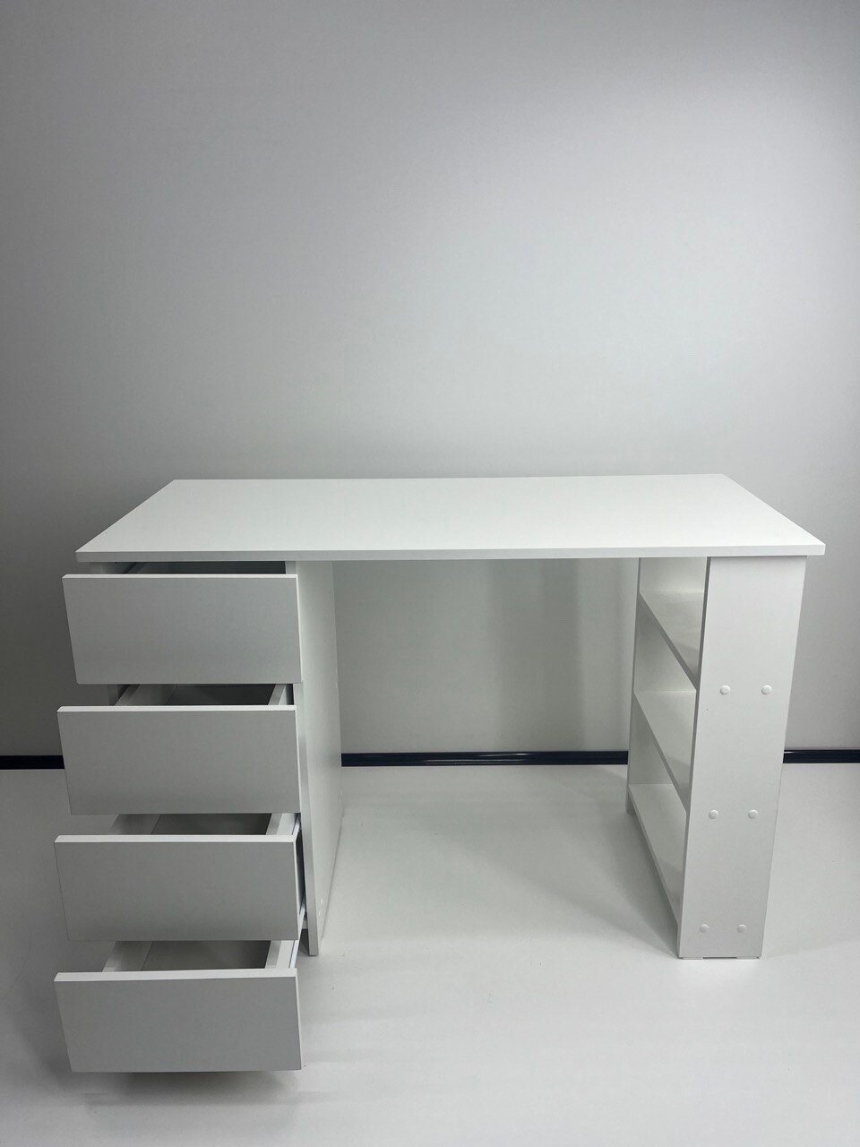 Стол письменный с ящиками школьный, компьютерный игровой стол, рабочий стол для ноутбука domokomod с 4 ящиками и полками белый 109.7*49.3*75.0