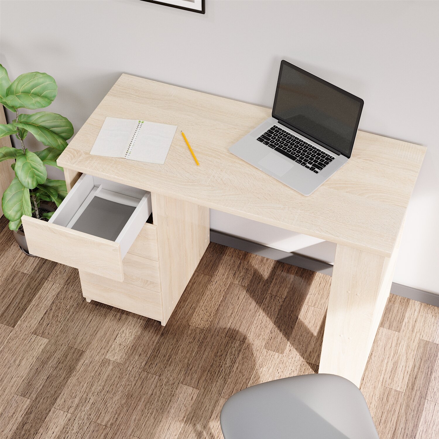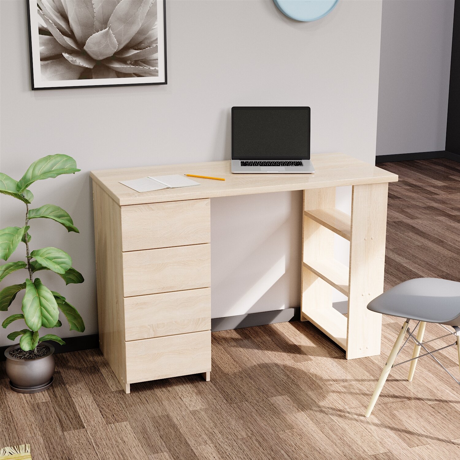 Купить Стол письменный с ящиками школьный, компьютерный игровой стол, рабочий стол для ноутбука domokomod с 4 ящиками и полками Дуб Санома 106*50*75