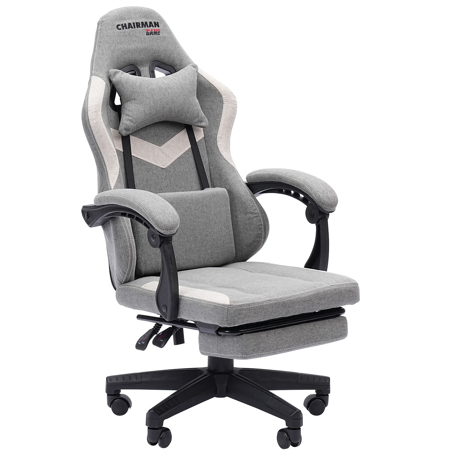 Игровое компьютерное кресло CHAIRMAN CH26 с выдвижной подставкой для ног, ткань, серый