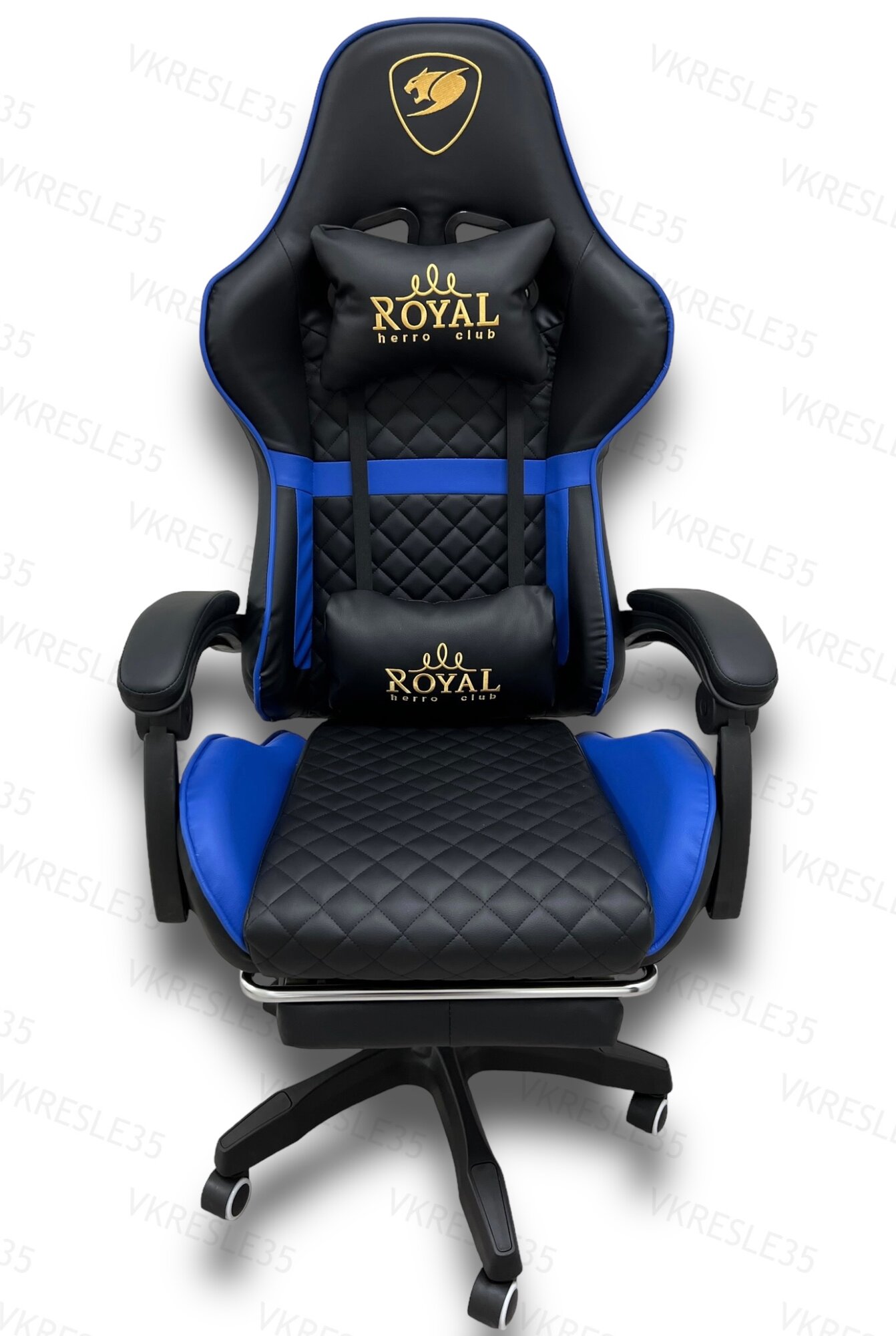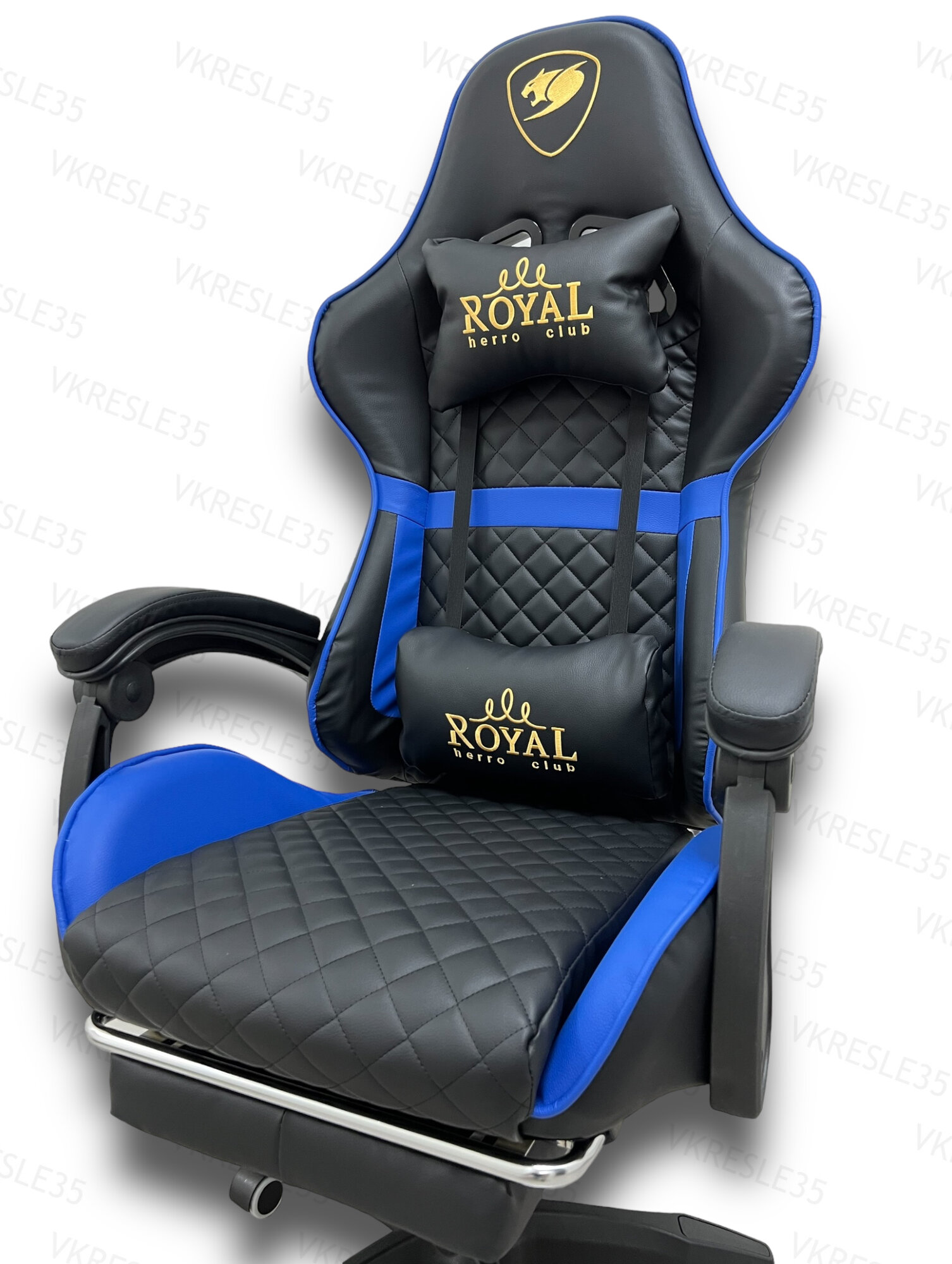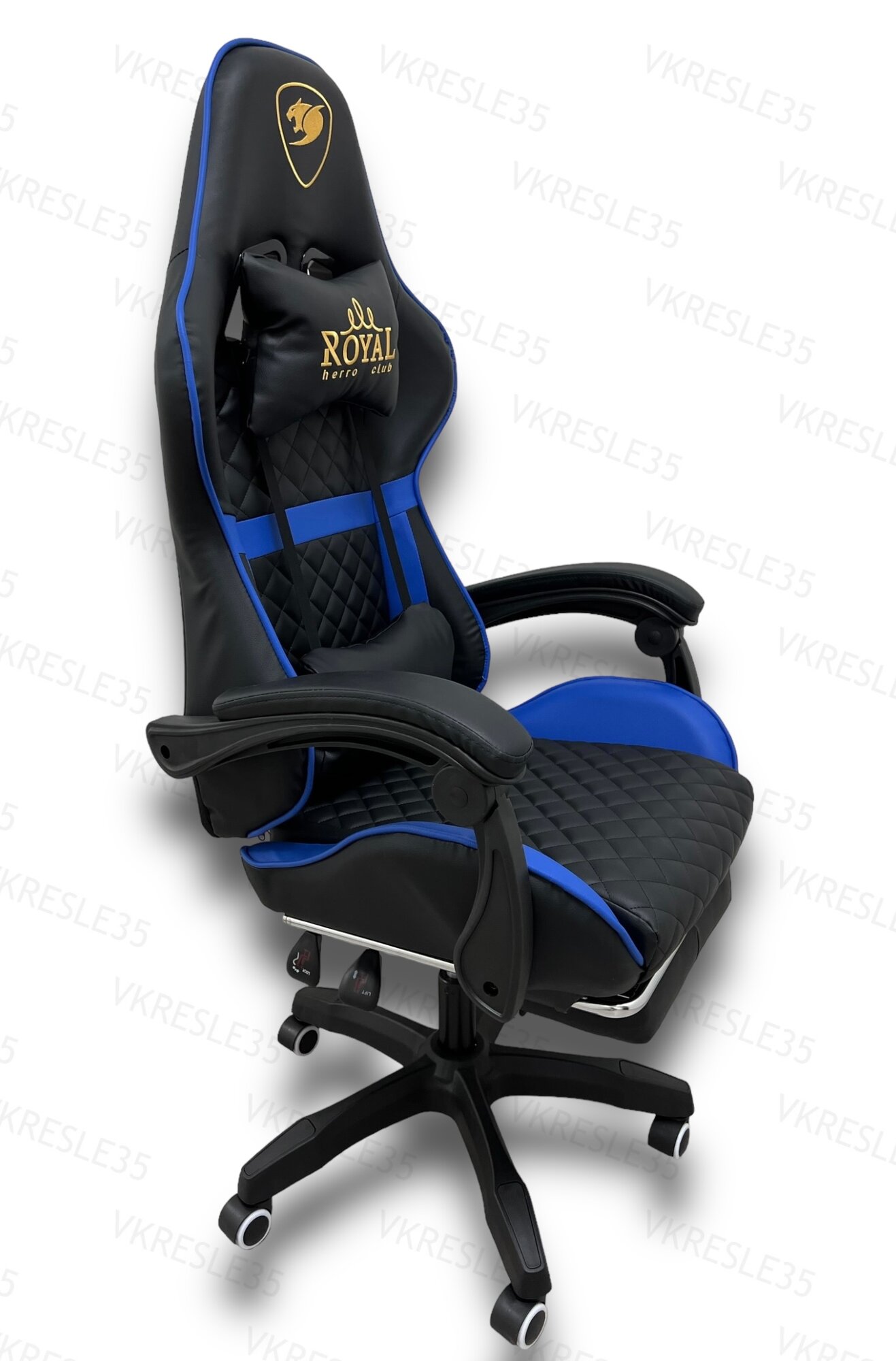 Купить Игровое Компьютерное Кресло с Вибромассажем, Черно-Синий, с подставкой для ног