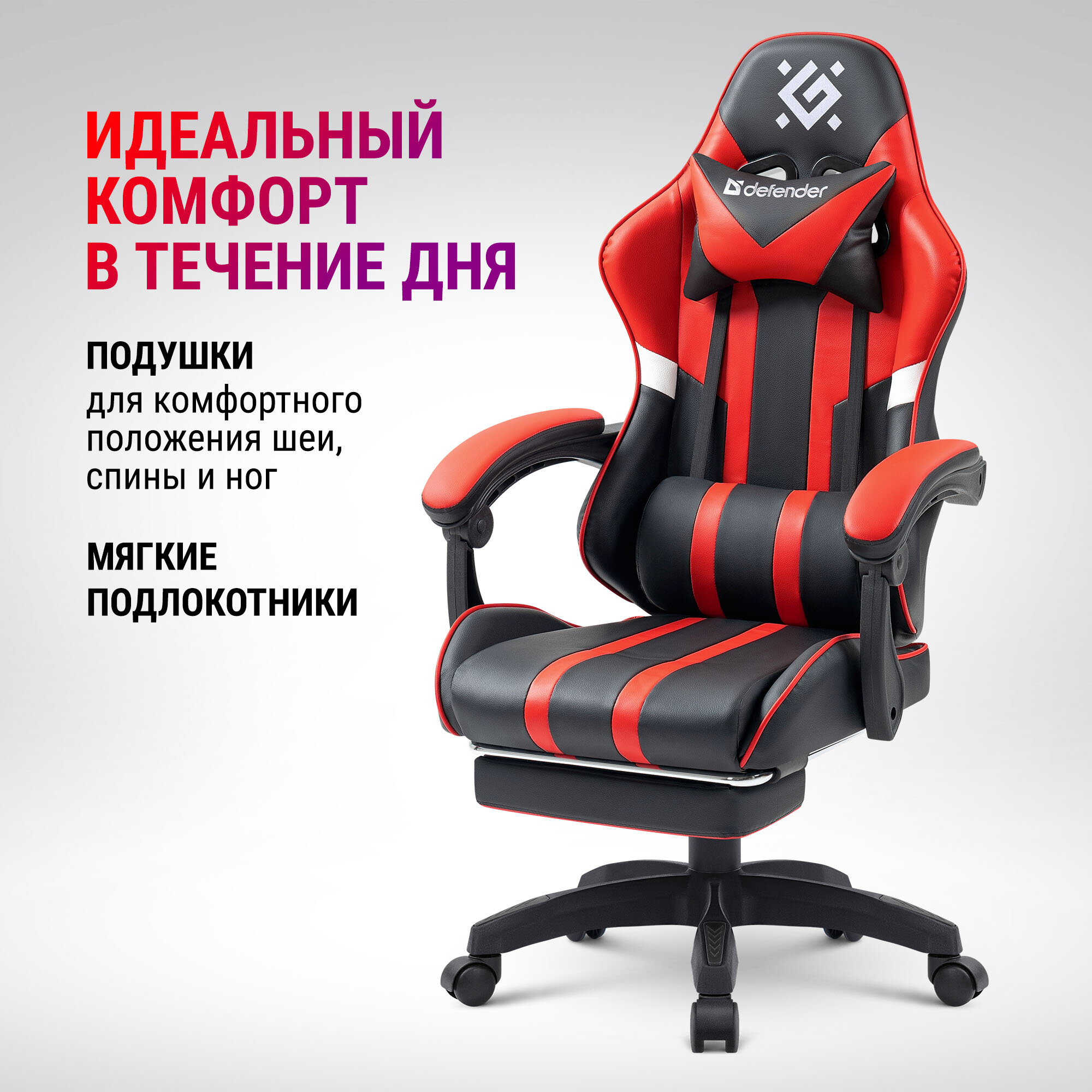 Компьютерное игровое кресло Defender Diablo с подголовником и подушкой под поясницу, мягкими подлокотниками