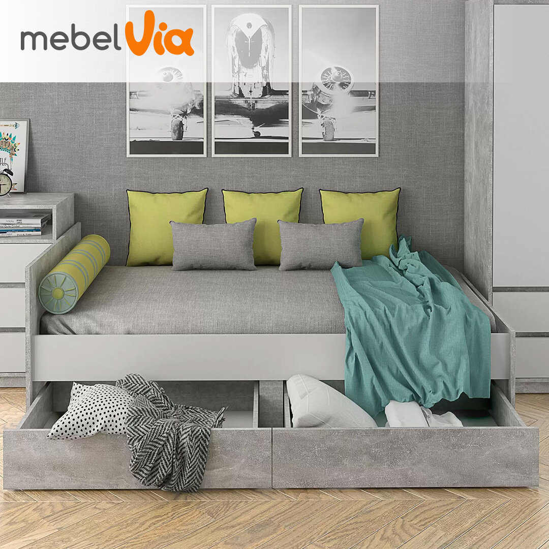 Кровать с ящиками 1800 с двумя тумбочками Камелия, цвет дуб сонома, ШхГхВ 296х217х78,2 см, спальное место 1800х2000 мм, без матраса, основание есть