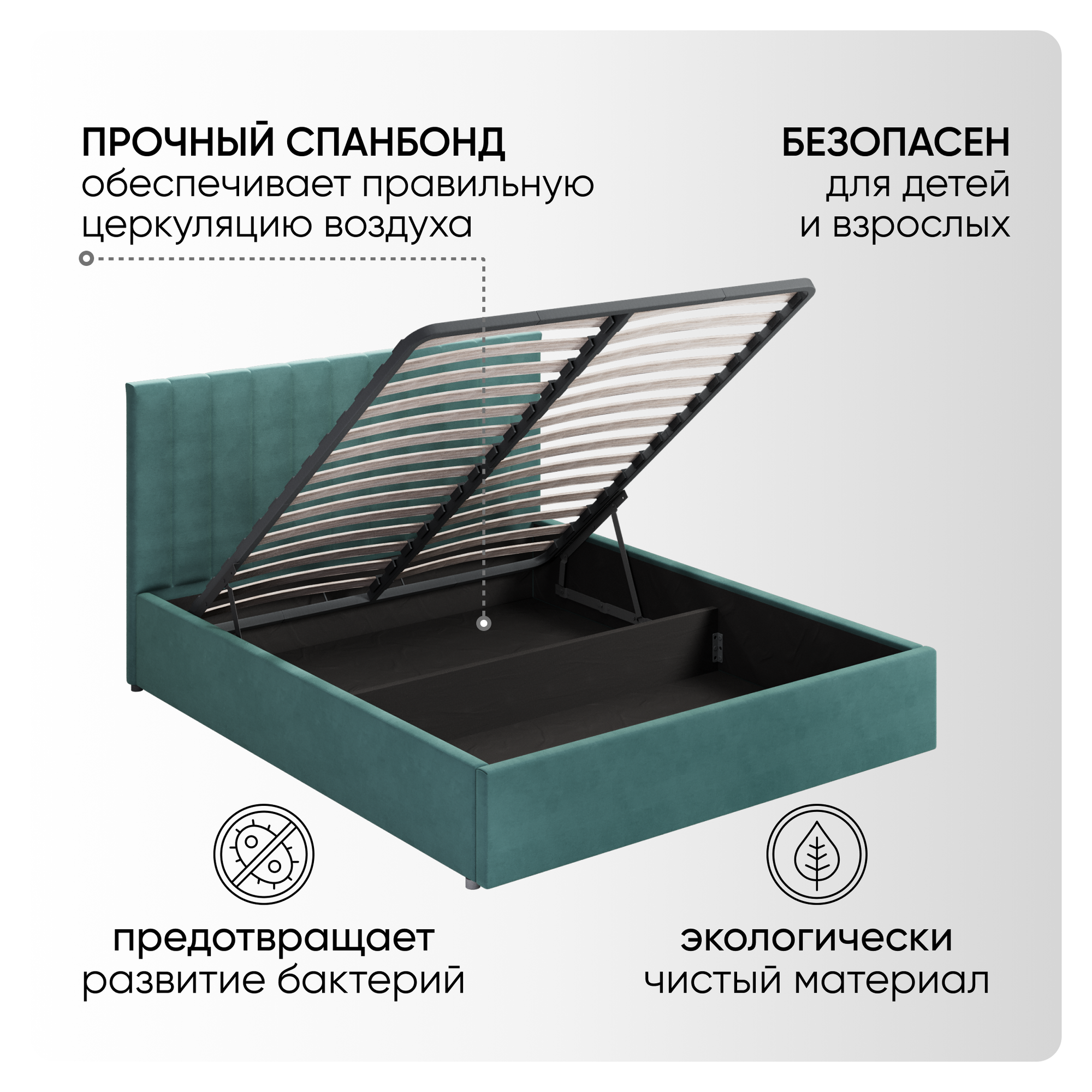 | Особенности | мягкое изголовье, с подъемным механизмом, с ящиком для белья |