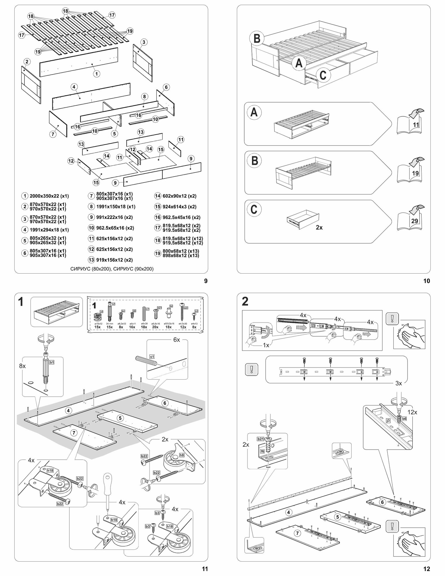 Кровать двуспальная/ раздвижная Сириус икея 90 (180) х200 Белая RU Новая без ручек на ящиках