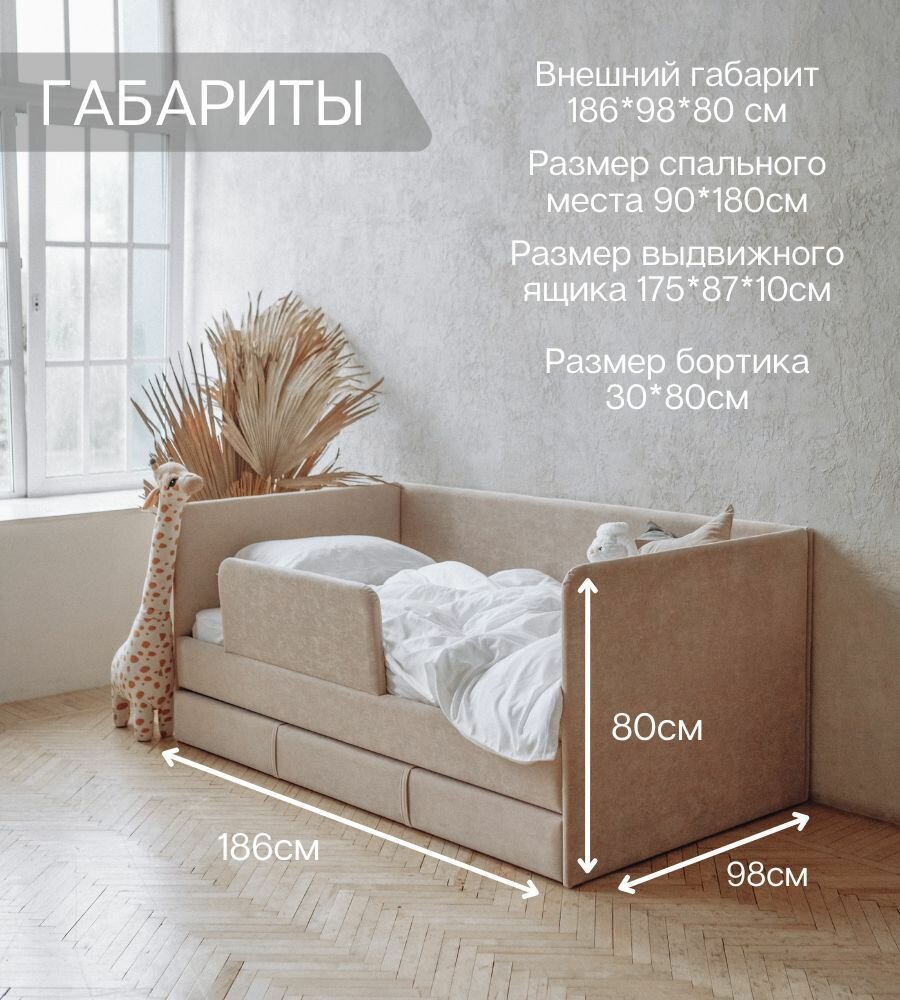 СохранитьДетский диван-кровать 90*180 см DREAM бежевый c выдвижным спальным местом, защитным бортиком, матрасом и чехлом, кровать детская от 3х лет интересное: