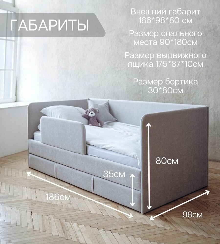СохранитьДетский диван-кровать 90*180 см DREAM светло-серый c выдвижным спальным местом, защитным бортиком, матрасом и чехлом, кровать детская от 3х лет интересное: