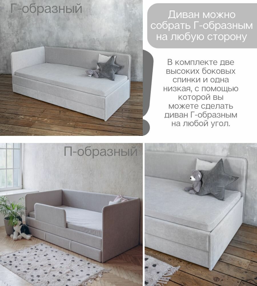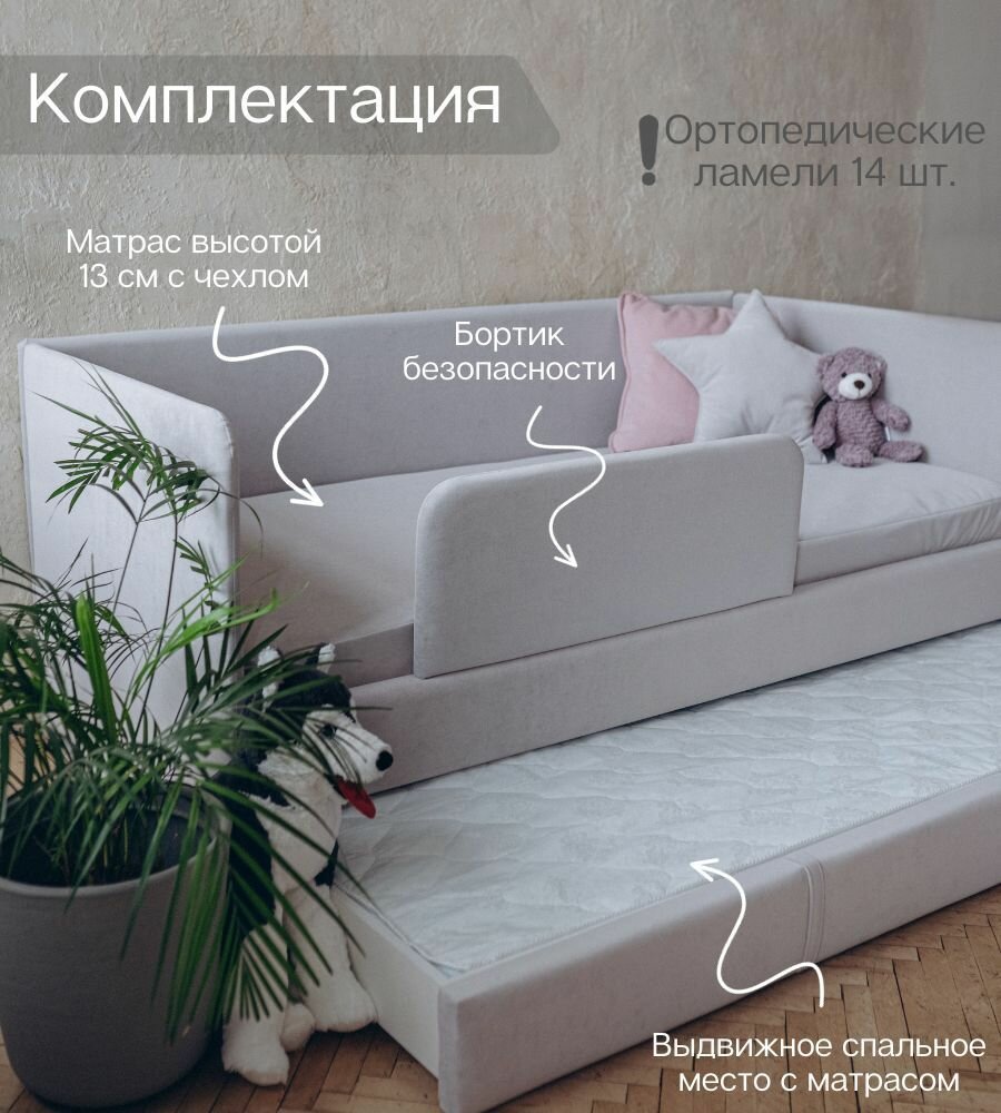 Купить Детский диван-кровать 90*180 см DREAM светло-серый c выдвижным спальным местом, защитным бортиком, матрасом и чехлом, кровать детская от 3х лет