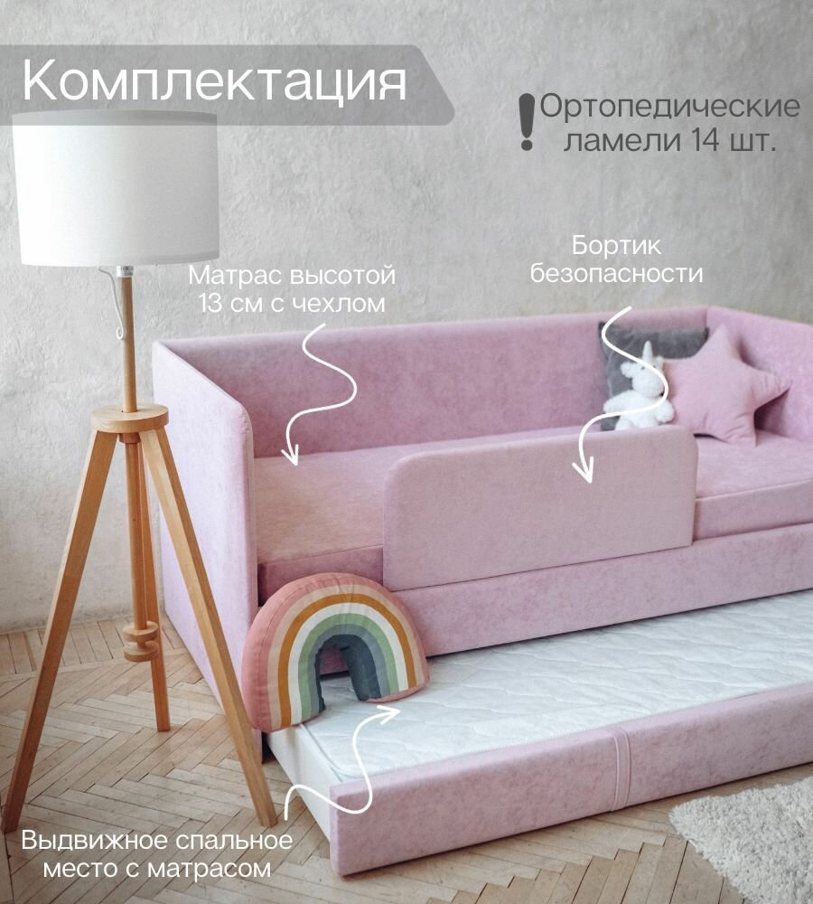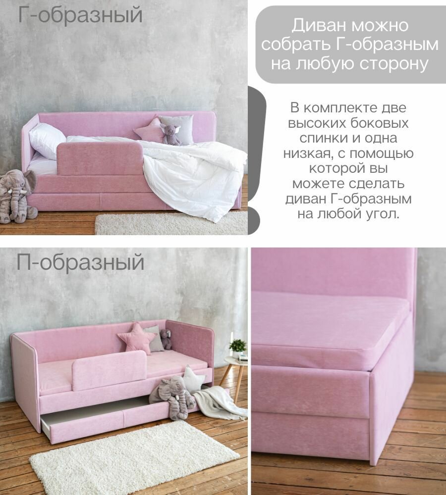 СохранитьДетский диван-кровать 90*180 см DREAM розовый c выдвижным спальным местом, защитным бортиком, матрасом и чехлом, кровать детская от 3х лет интересное: