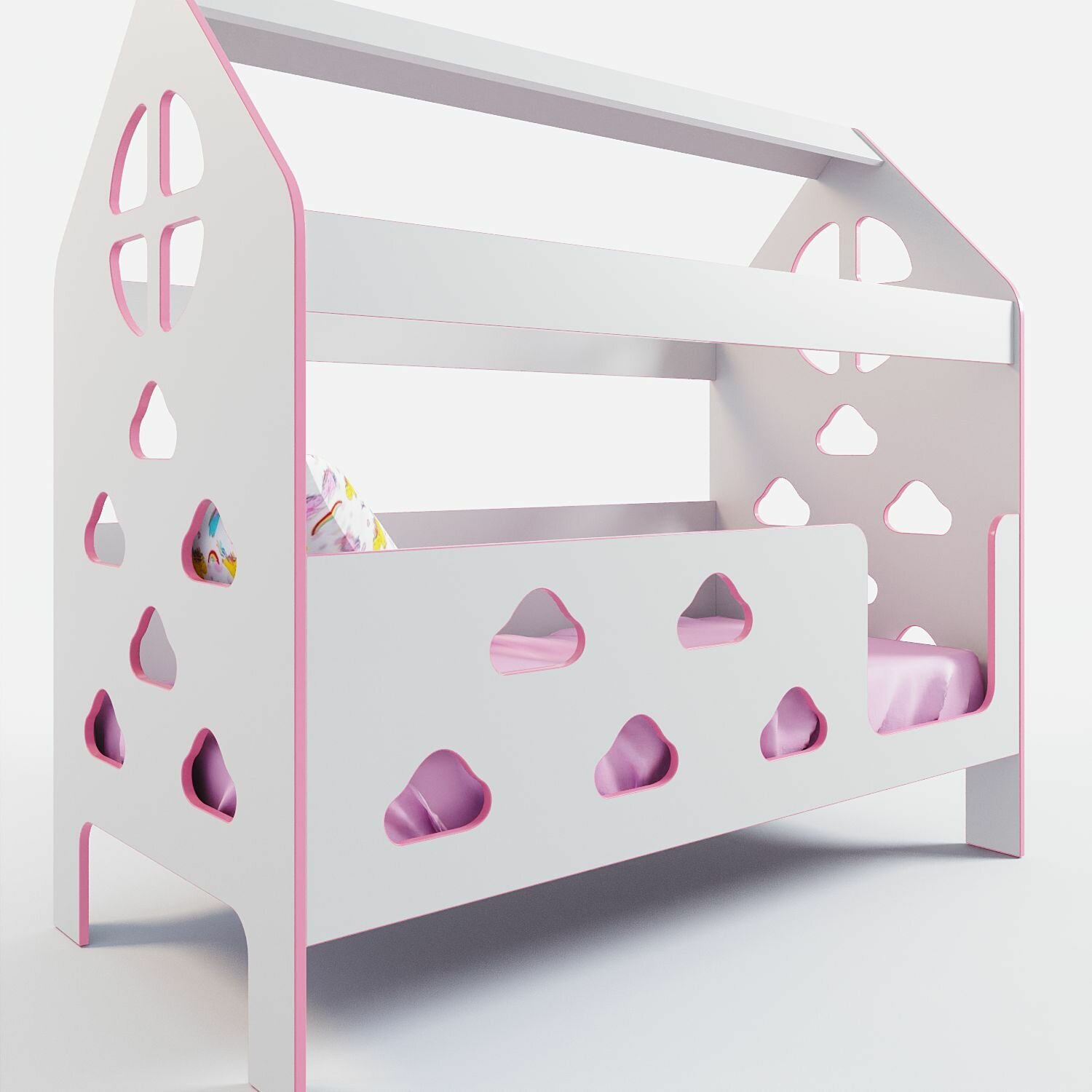 Кровать детская с бортиком под матрас 160х80, кровать-домик "Облачка", БазисВуд, вход справа, цвет розовый интересное: