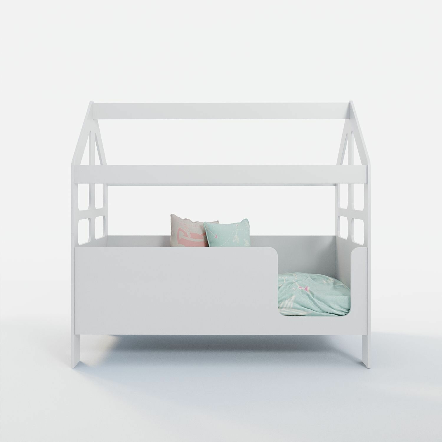 | Особенности | в форме домика, для детей, с бортиком, с изножьем, с ящиком для белья |