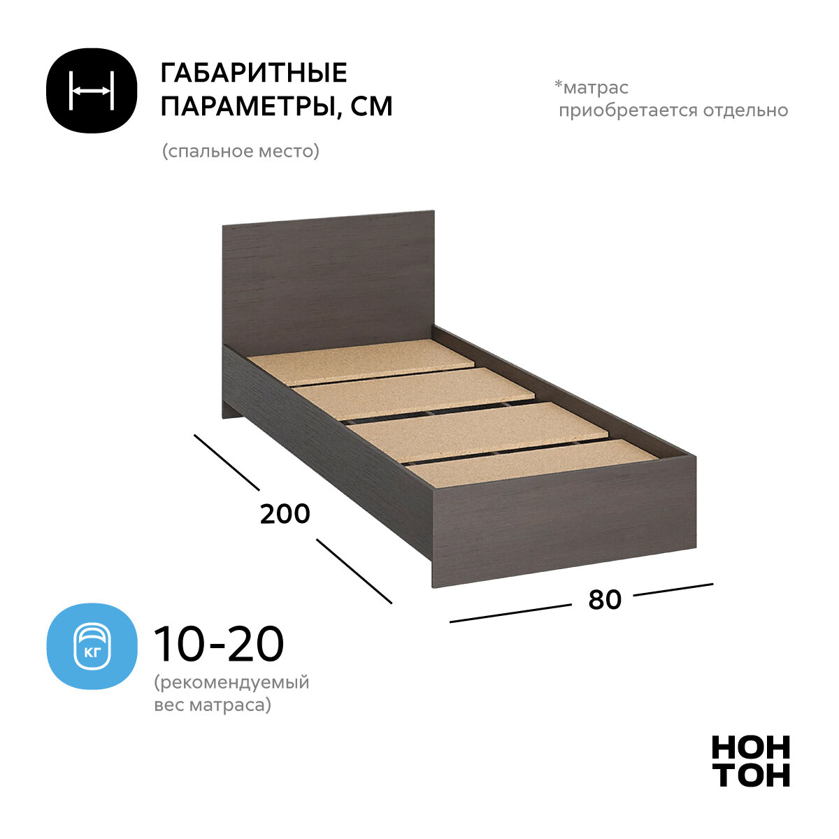 Кровать односпальная Нонтон Ронда, 80*200 см, основание ДСП, венге