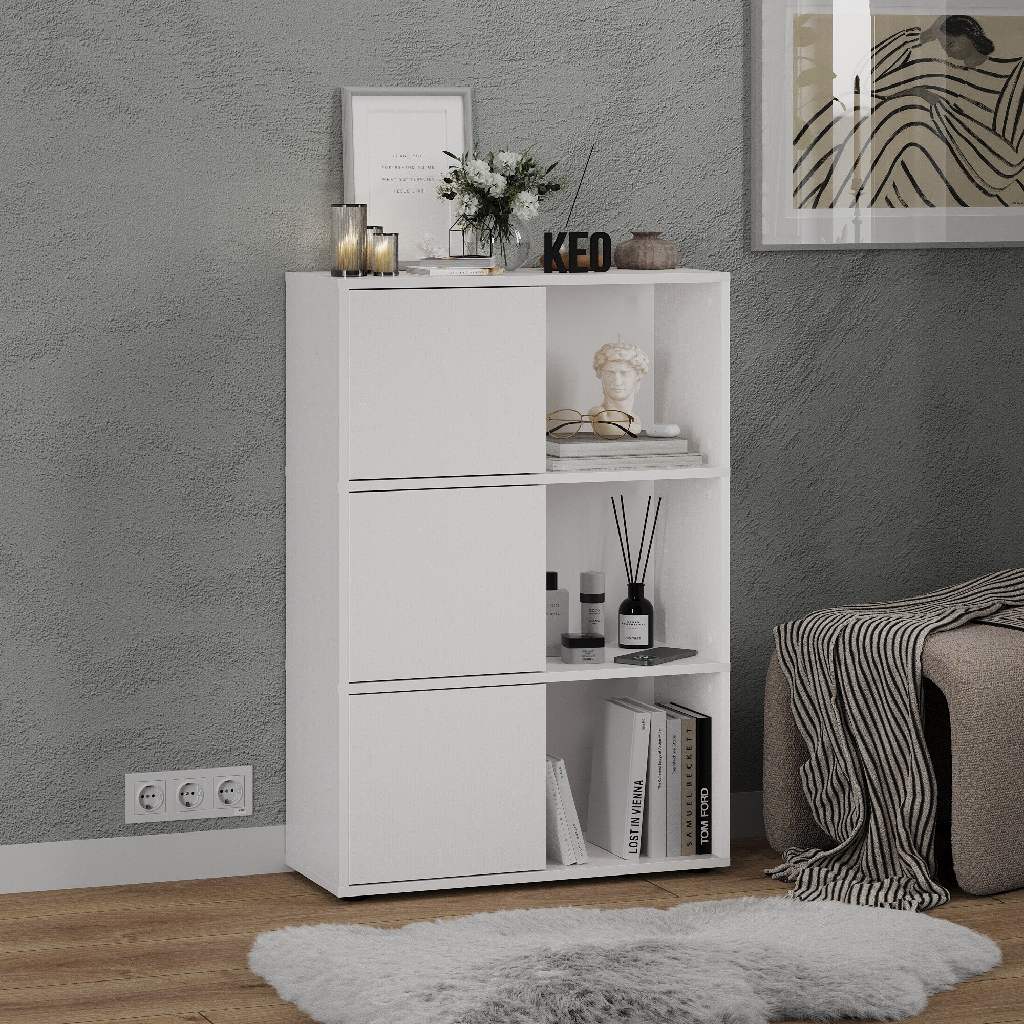 СохранитьСтеллаж напольный Кео СТЖ-300 белый с дверцами для книг в гостиную детскую ванную комнату 1024х293х700 мм интересное: