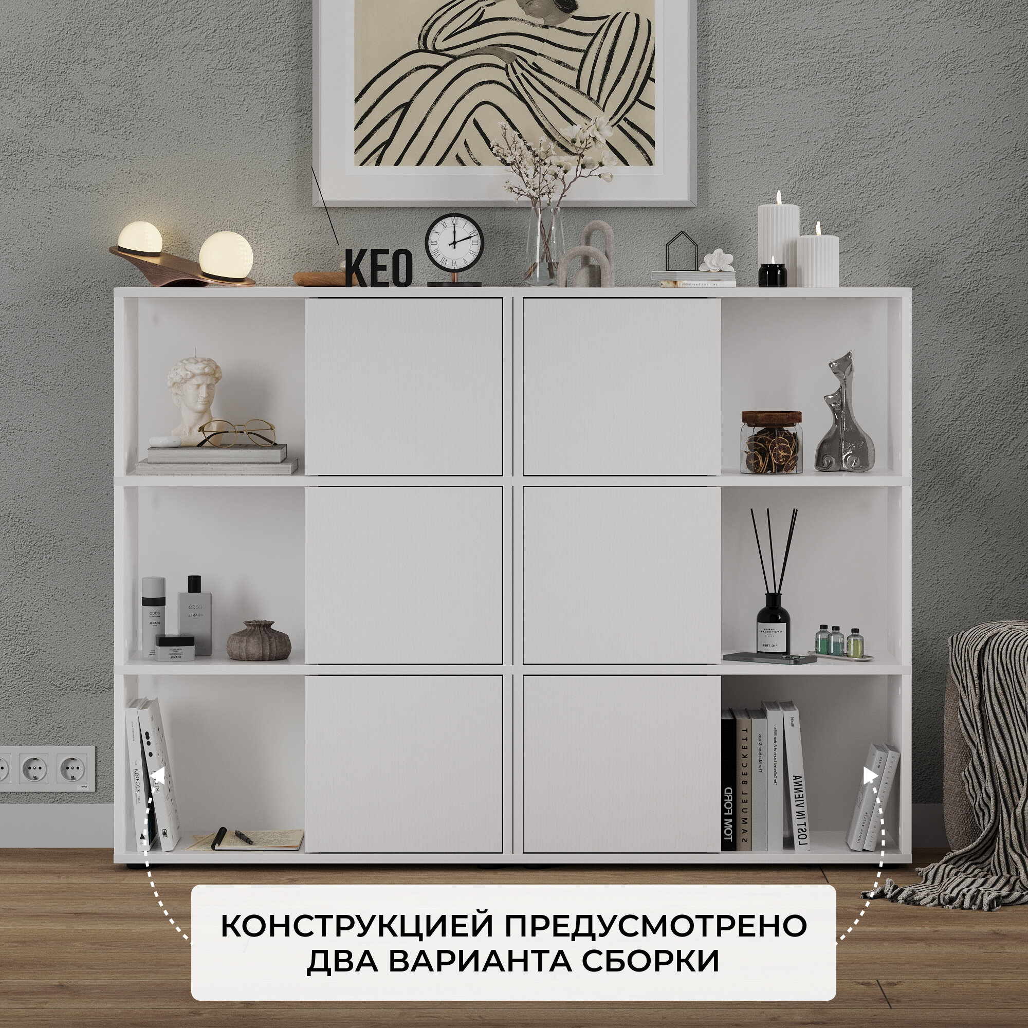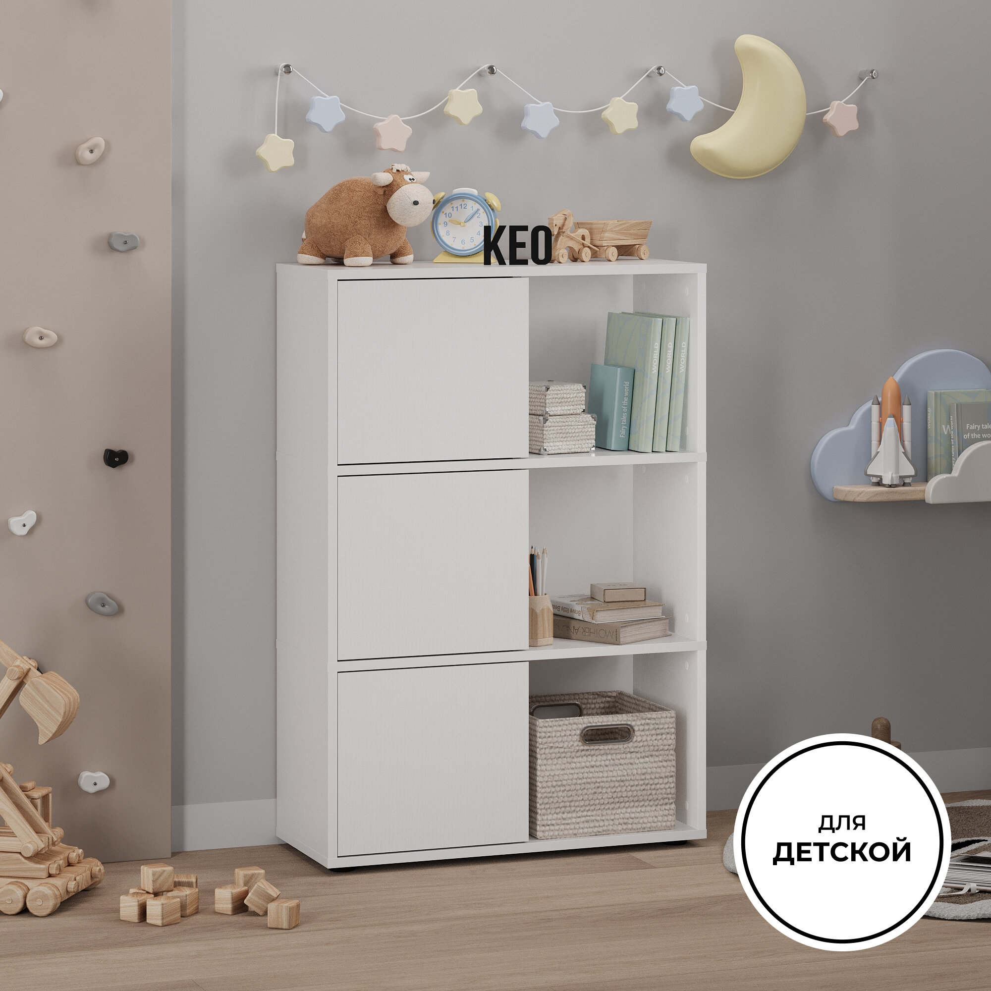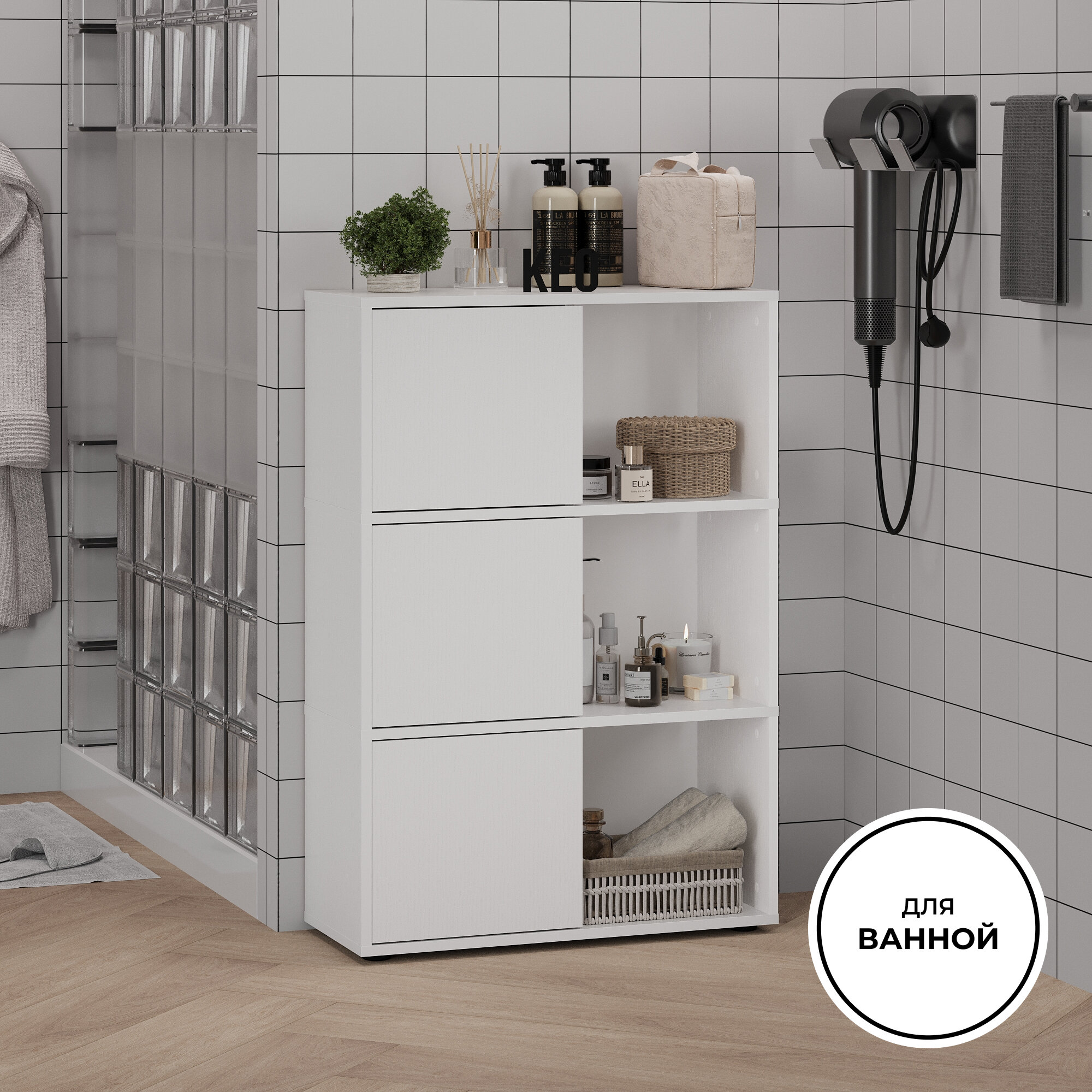 Купить Стеллаж напольный Кео СТЖ-300 белый с дверцами для книг в гостиную детскую ванную комнату 1024х293х700 мм