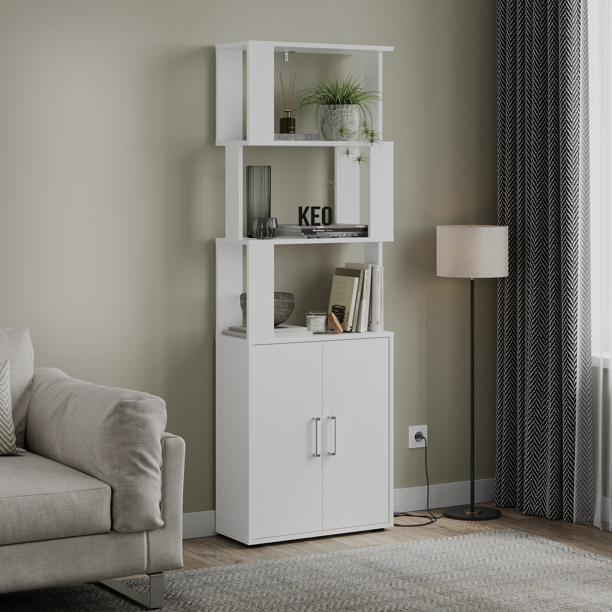 Стеллаж напольный Кео СТЖ-300 белый с дверцами для книг в гостиную детскую ванную комнату 1024х293х700 мм