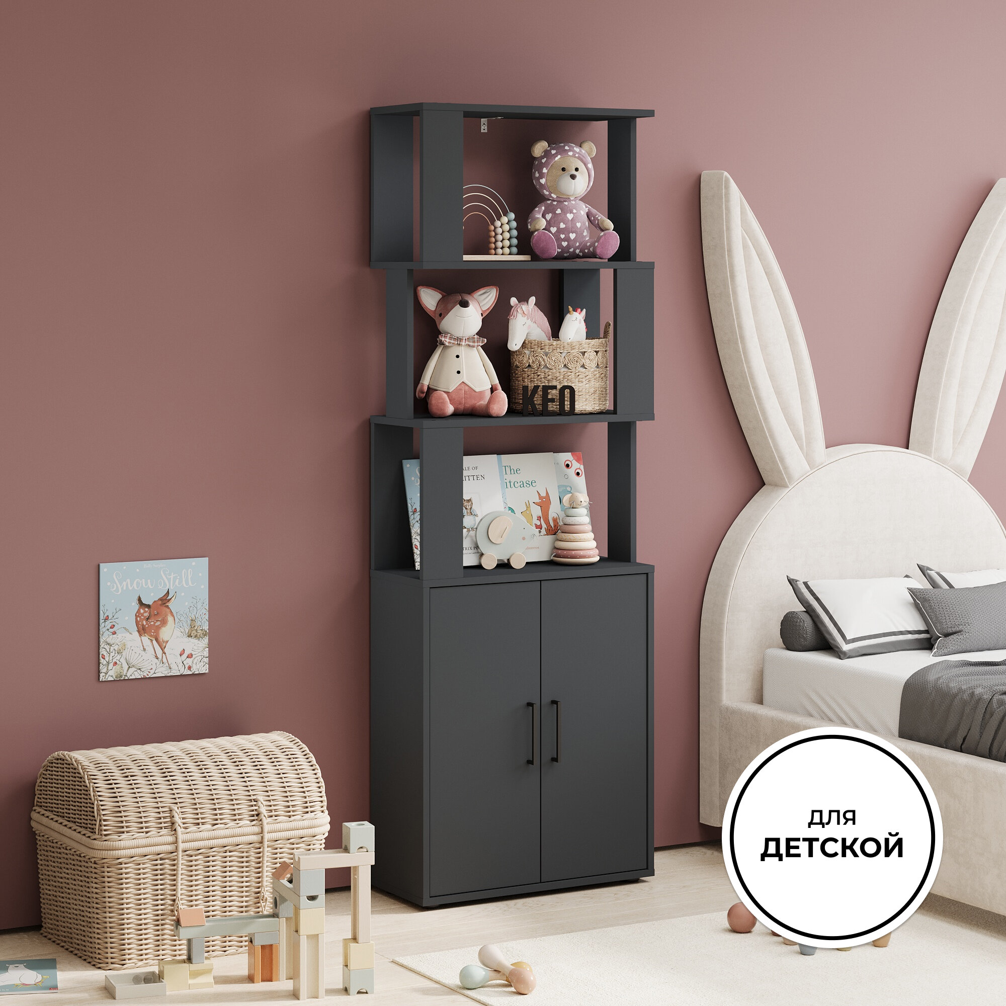 Купить Стеллаж напольный Кео СТЖ-212 антрацит высокий узкий с дверцами для книг 1761х253х600 мм