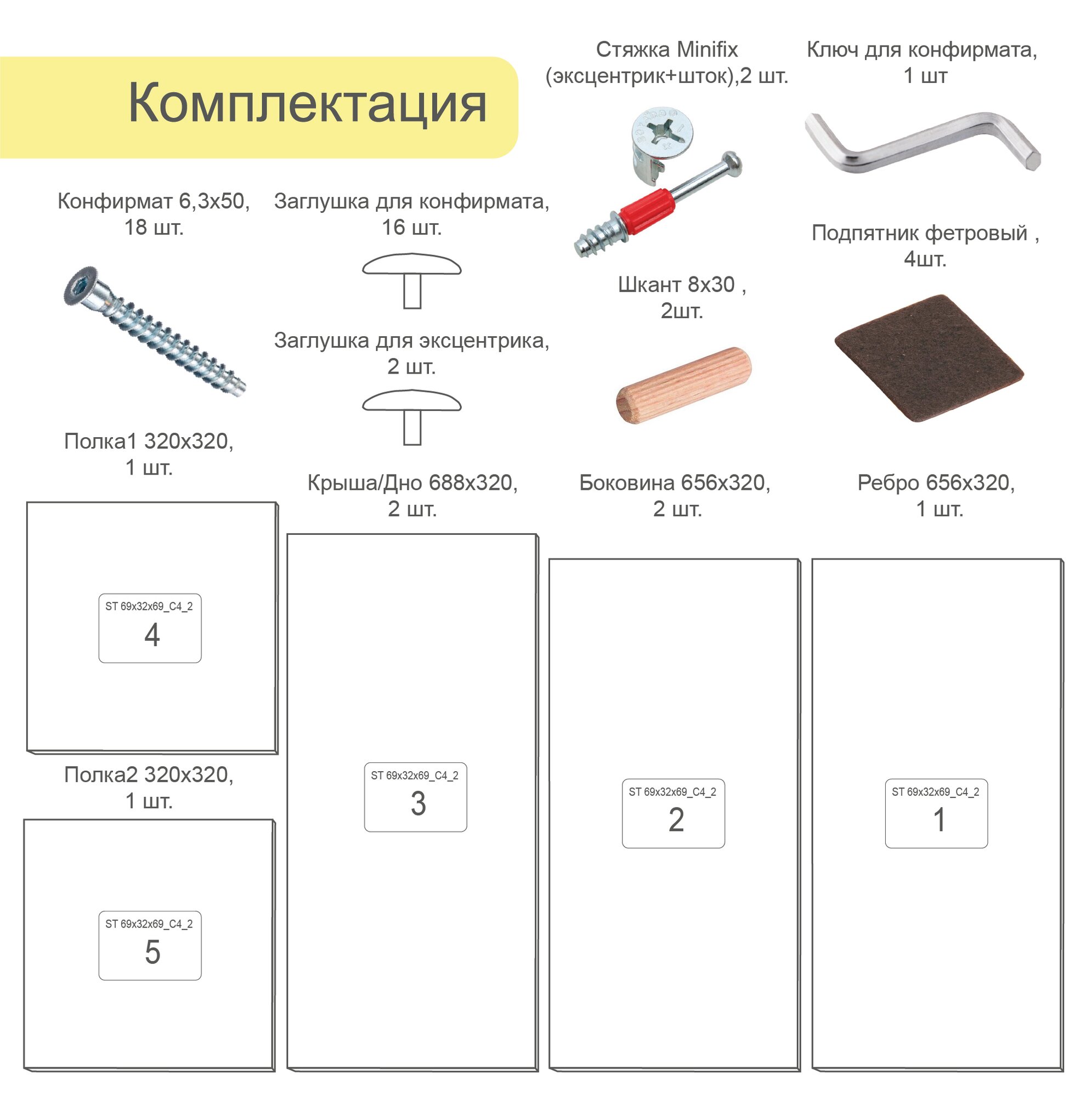 | Комплектация | в комплектацию входит: детали, комплект фурнитуры и инструкция по сборке. |