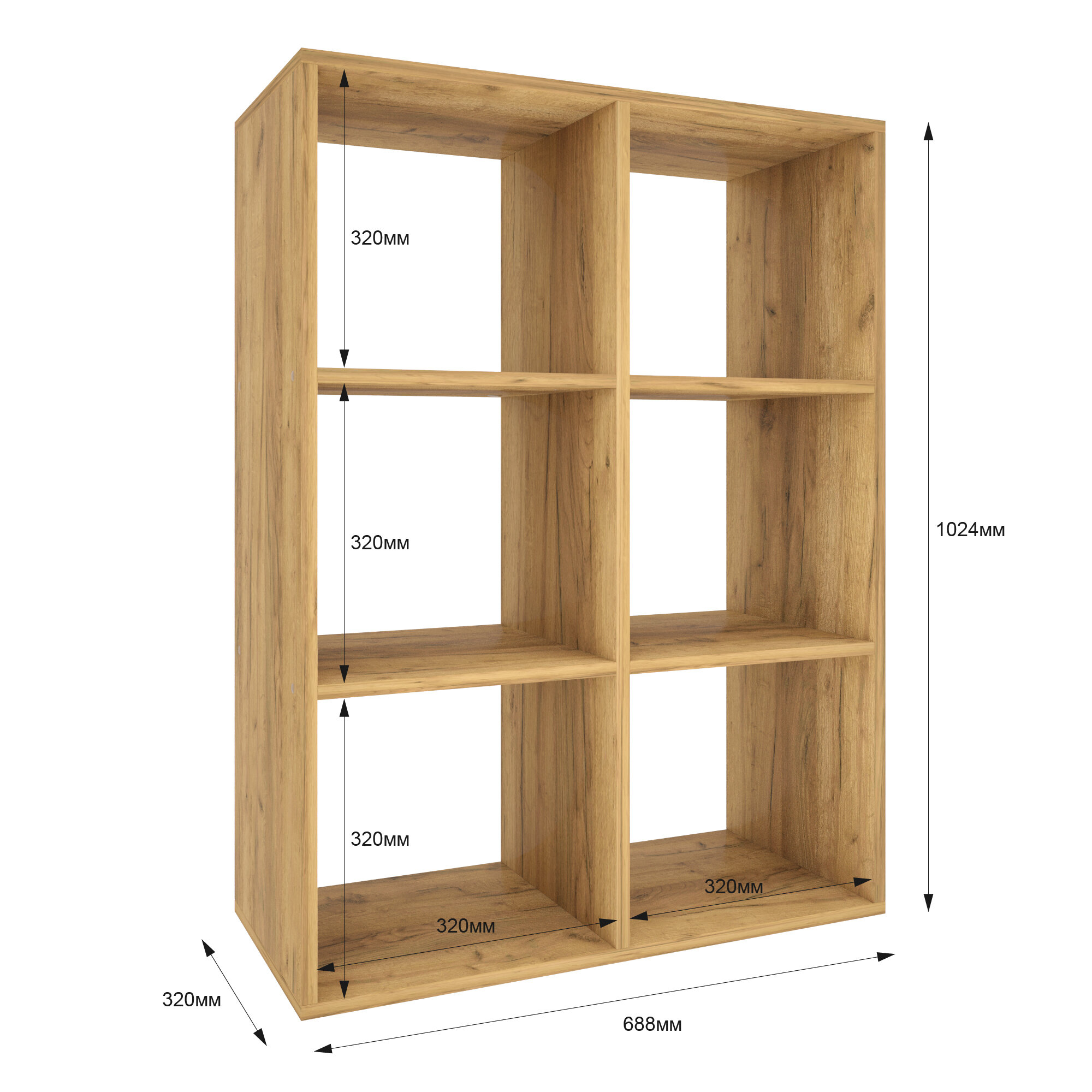 Стеллаж Velardy кубикус, 69x32x69см, дуб крафт золотой